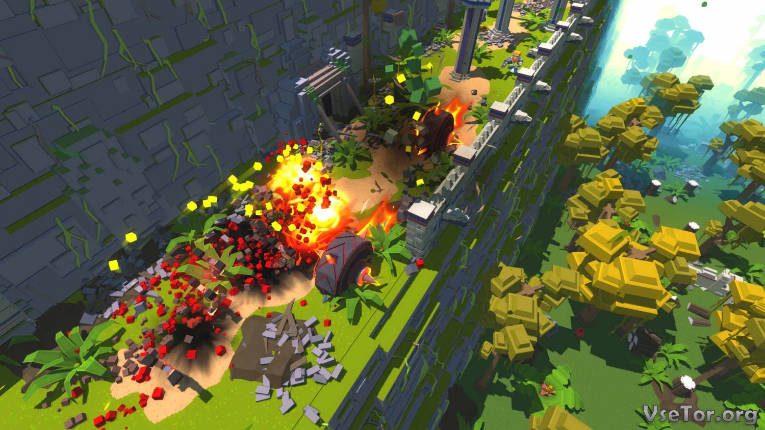 Вообще это по своей сути динамичный, безумный, и очень быстрый экшен-рогалик. Но при этом игра обладает и кучей дополнительных особенностей. К примеру, стоило бы сказать о частичной разрушаемости окружающего героев мире. А еще вас ждут путешествия по разным эпохам и мирам, уникальные уровни, проходящие через африканские равнины, джунгли, и не только, широчайшее разнообразие монстров, и многое-многое другое.