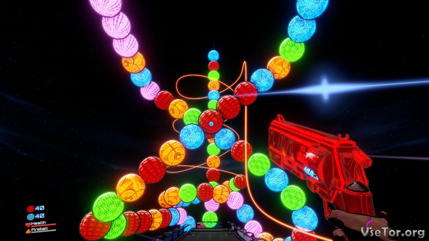 Игровой процесс в первую очередь тут основывается на уничтожении многочисленных разноцветных шаров. Но в отличие от названной ранее игры, тут все происходит в режиме вида от первого лица, а вместе стреляющего элемента в ваших руках будет специальных пистолет, стреляющий разноцветными шарами. Все, что вам нужно, это быстро прицеливаться нужными цветами шаров в такие же, и уничтожать шары, собирая их в ряды от трех одинаковых. Ничего сложного…