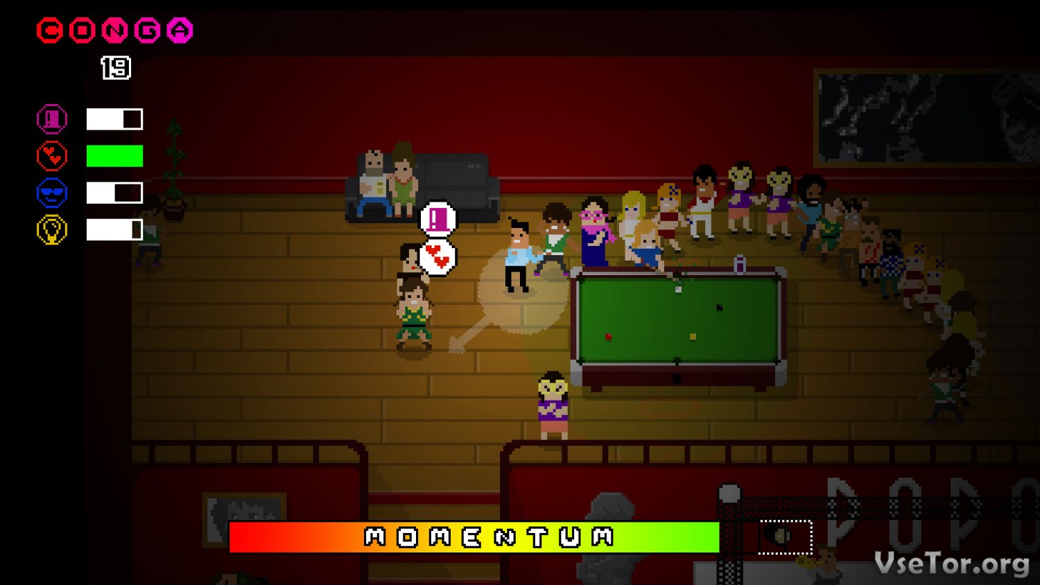 Самое удивительное заключается в том, что в столь простенькой игре есть еще и полноценная сюжетная линия. Да-да, есть и сюжет, по которому вам придется ходить по клубам и очаровывать людей, захватывая их сердца с помощью танца Конга, а есть и одиночная кампания с испытаниями, и просто бесконечный режим, в котором вам предстоит попросту попробовать установить рекорд. Попробуйте пройти хотя бы одиночный сюжетный режим, и будете поражены тем, сколько позитива может принести столь простая игра. А еще, кстати, поиграть в нее можно и в кооперативном режиме вместе с друзьями…