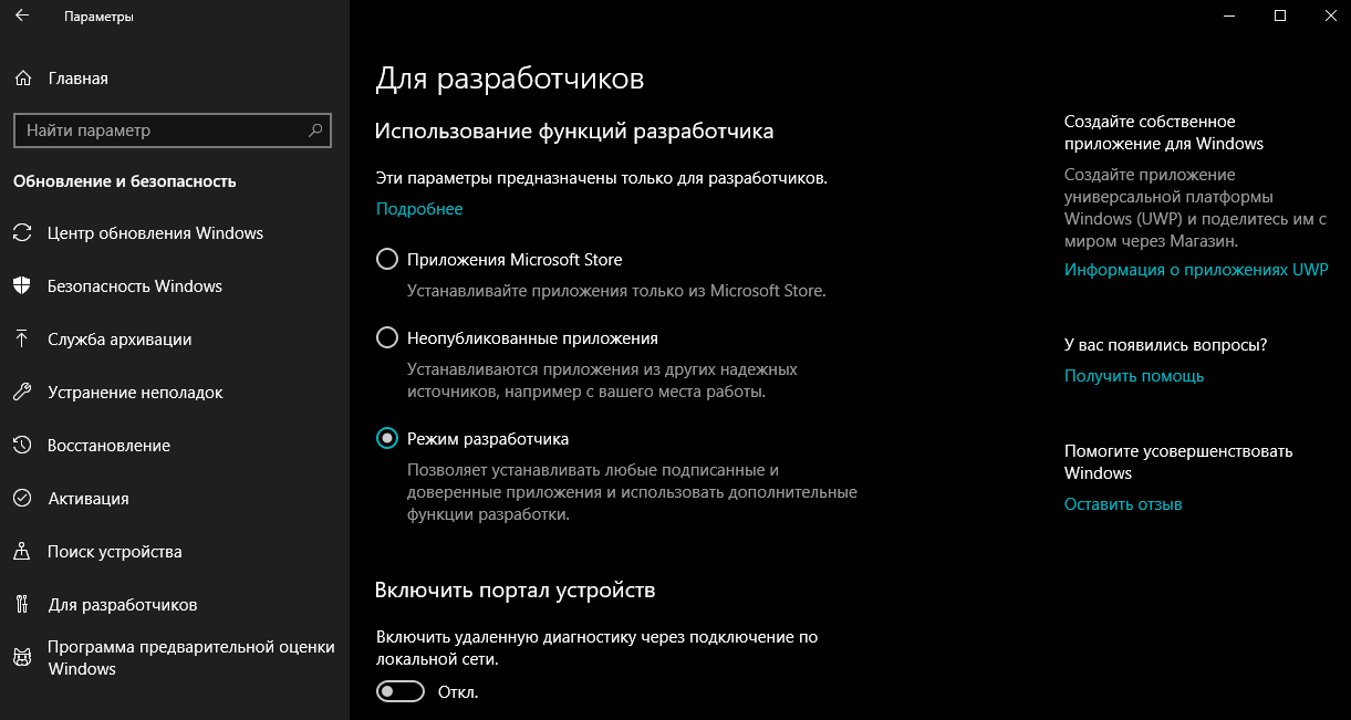 2. Запустить InstallApp.exe из папки с игрой для регистрации игры в системе. Перед запуском InstallApp.exe нужно обязательно включить режим разработчика.
