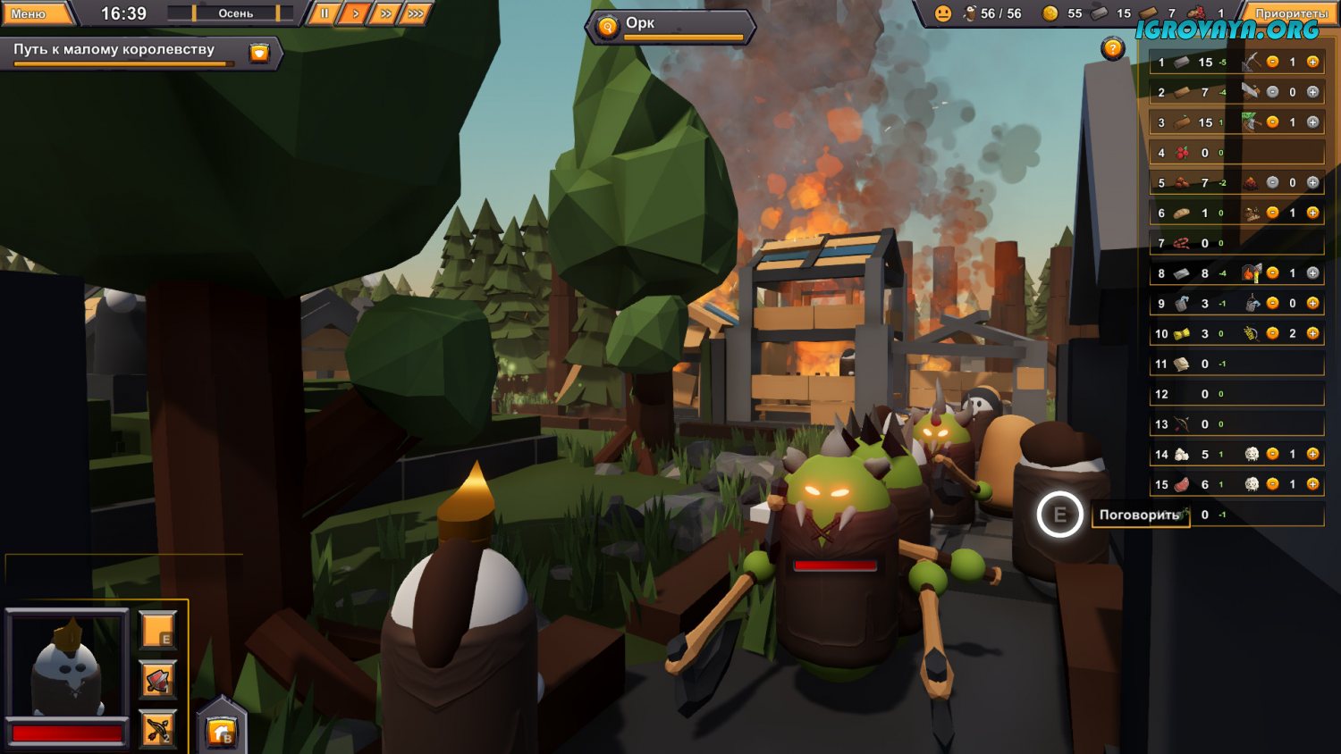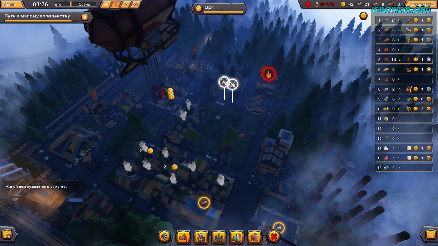 Один из важнейших моментов заключается в опасности оказаться жертвой злобных орков. Орки могут приходить по ночам, грабить ваше поселение, выносить ресурсы и даже уничтожать здания, и при этом никто из обычных поселенцев ничего не сможет им противопоставить.
