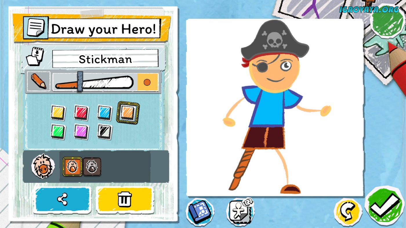 Ну а начинать здесь придется с самого малого, а именно, с создания игрового персонажа, будущего героя. Но суть в том, что здесь система создания персонажа в край отличается от того, что вы видели в других аналогичных приключенческих играх. Здесь создание персонажа ограничивается лишь вашей фантазией, наличием цветных карандашей в игре, и умением рисовать. Да-да, вы сами будете рисовать своего героя, и он в конечном итоге будет таким, каким вы его нарисуете.