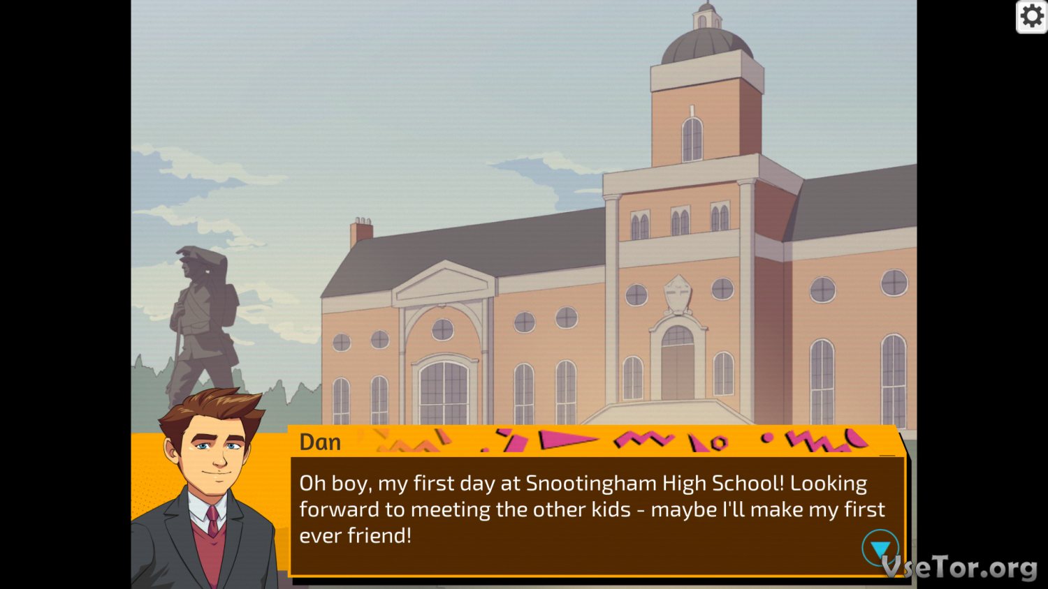 И первым делом стоило бы сказать о том, что данная игра является приквелом к проекту «Логово Заводного Бога», и она рассказывает о предшествующих описанным там событиях. Ну а здесь все начинает происходить в тот самый момент, когда парень по имени Дэн приезжает к воротам огромной школы, в которой он всегда мечтал оказаться. Там у него будет шанс познакомиться с кумиром, узнать больше о его деятельности, обзавестись новыми друзьями, и не только. Дэн возлагал на этот приезд много надежд, но им не суждено было сбыться, ведь сразу по приезду он погружается в череду событий, которые могут сказаться на жизни всех учеников школы и его личной. В общем, будет действительно интересно.
