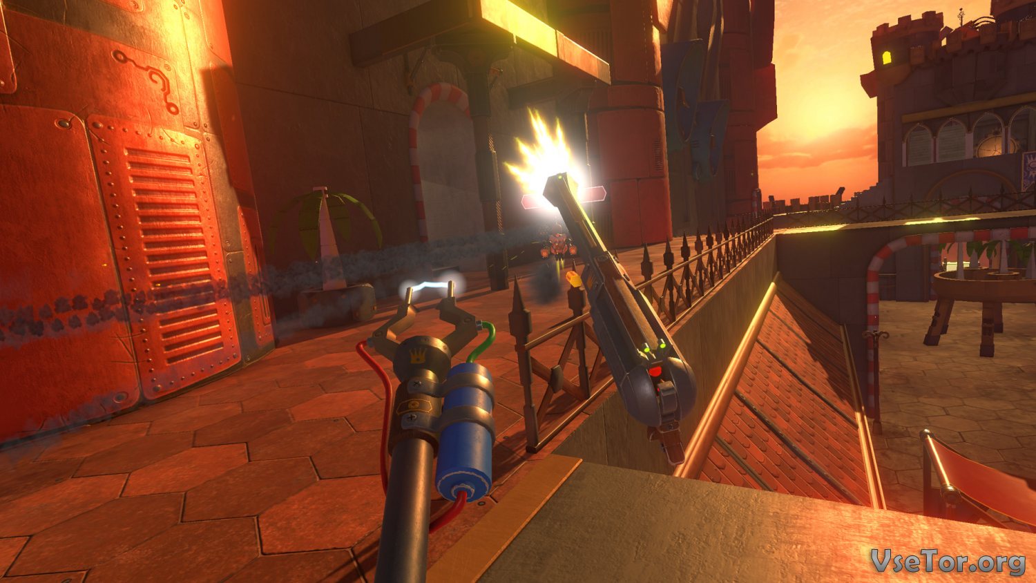 А оружие в Bandit Point и вовсе поражает. Может показаться, что это средневековый экшен, но на самом деле в вашем распоряжении помимо средневековых вооружений, вроде лука и булавы, будет еще и много другого. Это и крутой пистолет, и что-то вроде шокера, и лук, и дубина со спиралью, и более того, вы сможете пострелять во врагов даже из стационарного пулемета или пушки. В общем, будет весело и интересно… У нас вы можете скачать Bandit Point (VR) торрент последнюю версию бесплатно на компьютер.