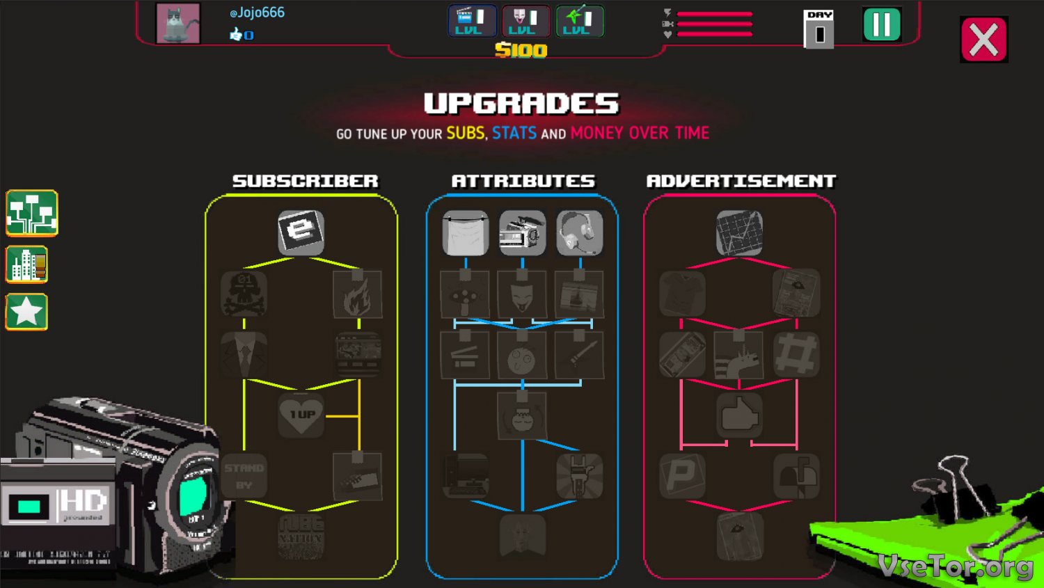 Суть игры довольно проста. Ничего принципиально сложного или сверх нового тут не предлагает. Вам лишь нужно контролировать главного героя и помогать ему развиваться. В самом начале в вашем распоряжении будет лишь простенькая комнатка и несколько подписчиков, но уже через некоторое время будет полегче. Вы сможете начать играть в вымышленные игры на компьютере главного героя, снимать видео, записывать стримы, поднимать популярность, зарабатывать деньги, и делать многое другое.