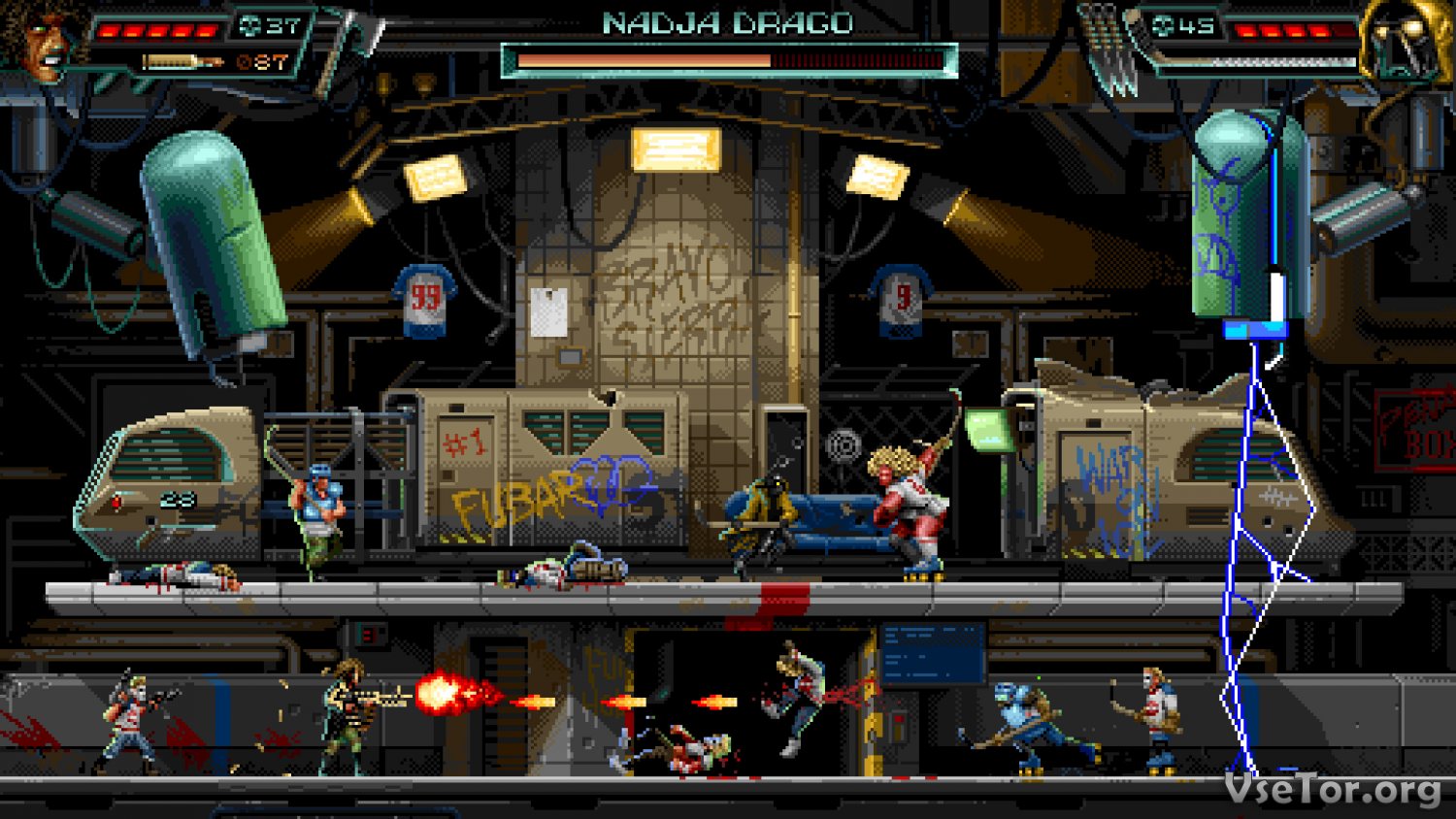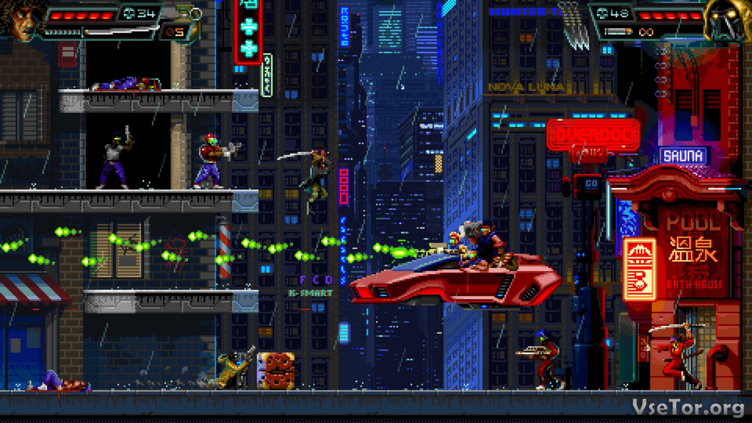 Вы же сможете в HUNTDOWN выбрать любого из героев и отправиться на улицы охваченного хаосом города. Но будьте осторожны, ведь враги хорошо вооружены и будут поджидать вас со своими дружками на каждом шагу. Пробивайтесь к целям с боем, используйте самое современное и крутое вооружение, прокачивайтесь и обзаводитесь новыми примочками, и выживайте, попутно получая удовольствие от ретро-атмосферы и безумных перестрелок. У нас вы можете скачать HUNTDOWN торрент последнюю версию бесплатно на компьютер.