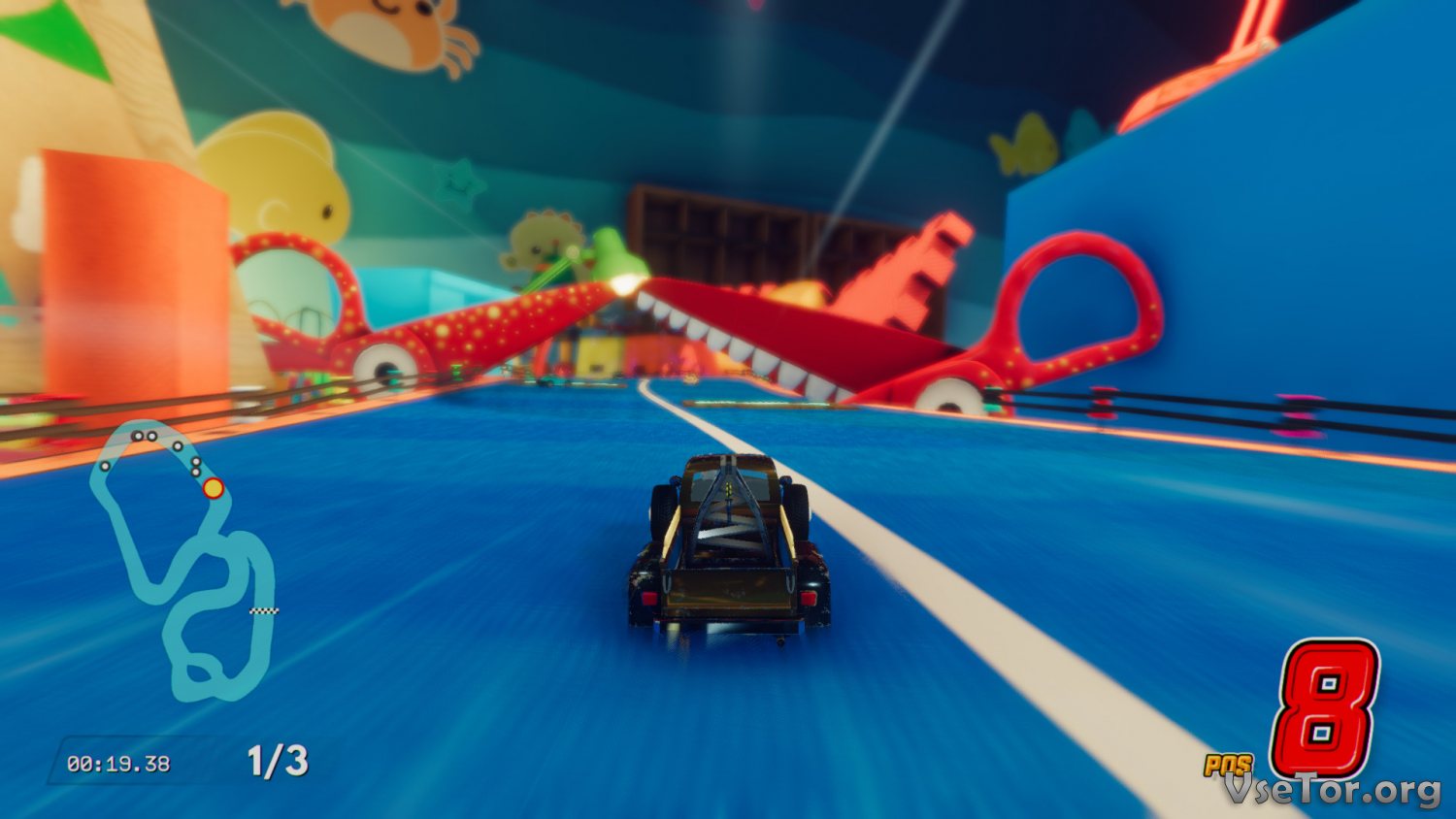 А еще в Super Toy Cars 2 вас ждут действительно разнообразные трассы и кучи различных помех, от которых порою хочется и смеяться, и плакать. Прямо по ходу гонки на машину может упасть какая-нибудь игрушке. по трассе могут прокатиться игральные кости, или и вовсе могут появиться ножницы, режущие саму трассу. В общем, будет весело. Соберите волю в кулак, откройте автомобиль помощнее, отправляйтесь в череду состязаний и начинайте творить хаос, который позволит вам выжить и добраться до трассы. если не единственным, то первым… У нас вы можете скачать Super Toy Cars 2 торрент последнюю версию бесплатно на компьютер.