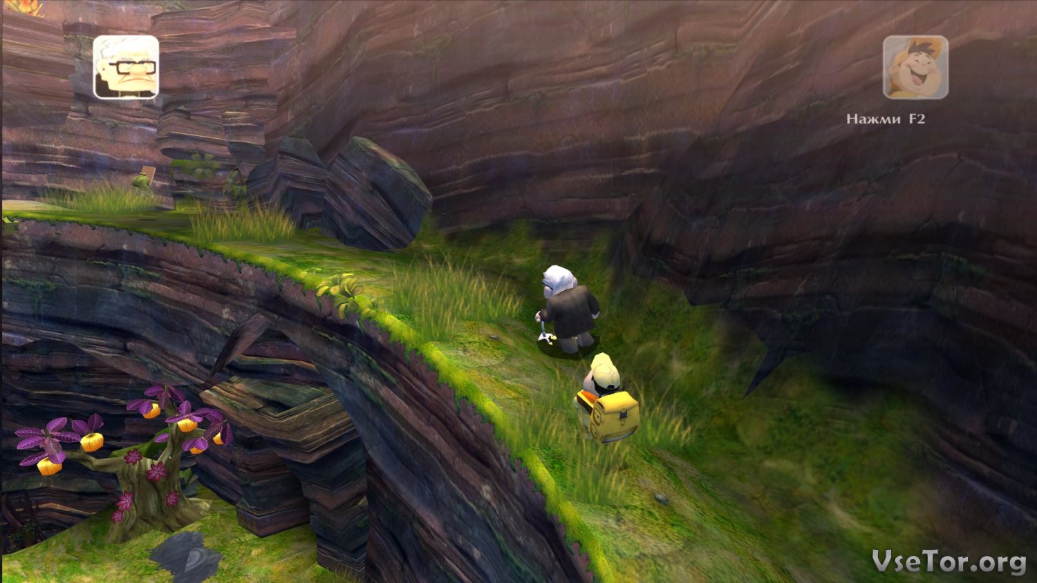 Ну а первым делом стоило бы сказать о том, что игра целиком и полностью основывается на одноименном мультфильме, скачайте игру Вверх и сами все поймете. И речь идет не только о повторении героев и некоторых событий, но также и о том, что в игру вставлены видеоролики из мультфильма, некоторые диалоги, и даже места, в которых главные герои бывали на самом деле. Причем, еще и атмосфера тут царит такая, что голова идет кругом. Вас ждут красивейшие локации и пейзажи, шутки, веселье, интриги, множество приколов, и не только.