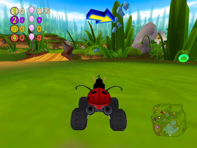 Ну а первым делом стоило бы сказать несколько слов об атмосфере. В роли жука Кузи вы будете гонять по бездорожью, скользить по воде, подпрыгивать в воздух на трамплинах и медленно приземляться. используя крылья. Все это итак создает прекрасную атмосферу, а плюс ко всему все действия сопровождаются еще и боями по ходу гонки и комментариями Кузи. В итоге создается такая атмосфера, что не передать словами.
