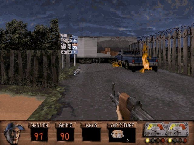 Во второй части, получившей название «Redneck Rampage Rides Again: Arkansas» вы уже продолжите историю братьев и через всю Америку отправитесь домой, в родной городок, с которого в свое время все и начиналось. Игра осталась на том же уровне графики, но при этом предлагает и много нового. Например, теперь вас ждет целых 14 уровней с битвами против пришельцев, а также, управляемые машины, которых не было в первой части, новые стволы и другие вооружения, вроде резака, новые пришельцы, и не только.