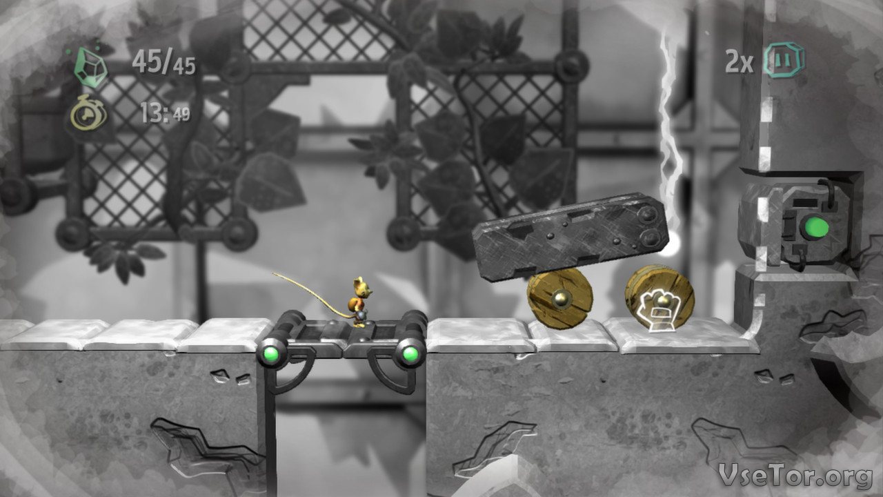 Одной же из особенностей этой игры является атмосфера. Падающие с потолков блоки, колья, торчащие из стен, поджигающие всякого попавшего под лазер лучи, давящие платформы, кислота в ямах и огонь – все это еще далеко не полный перечень тех ловушек, в которые вы будете попадать по ходу прохождения игры. Плюс, атмосферности добавляет еще и то, что все смерти мышонка сопровождаются кровью и другими эффектами.