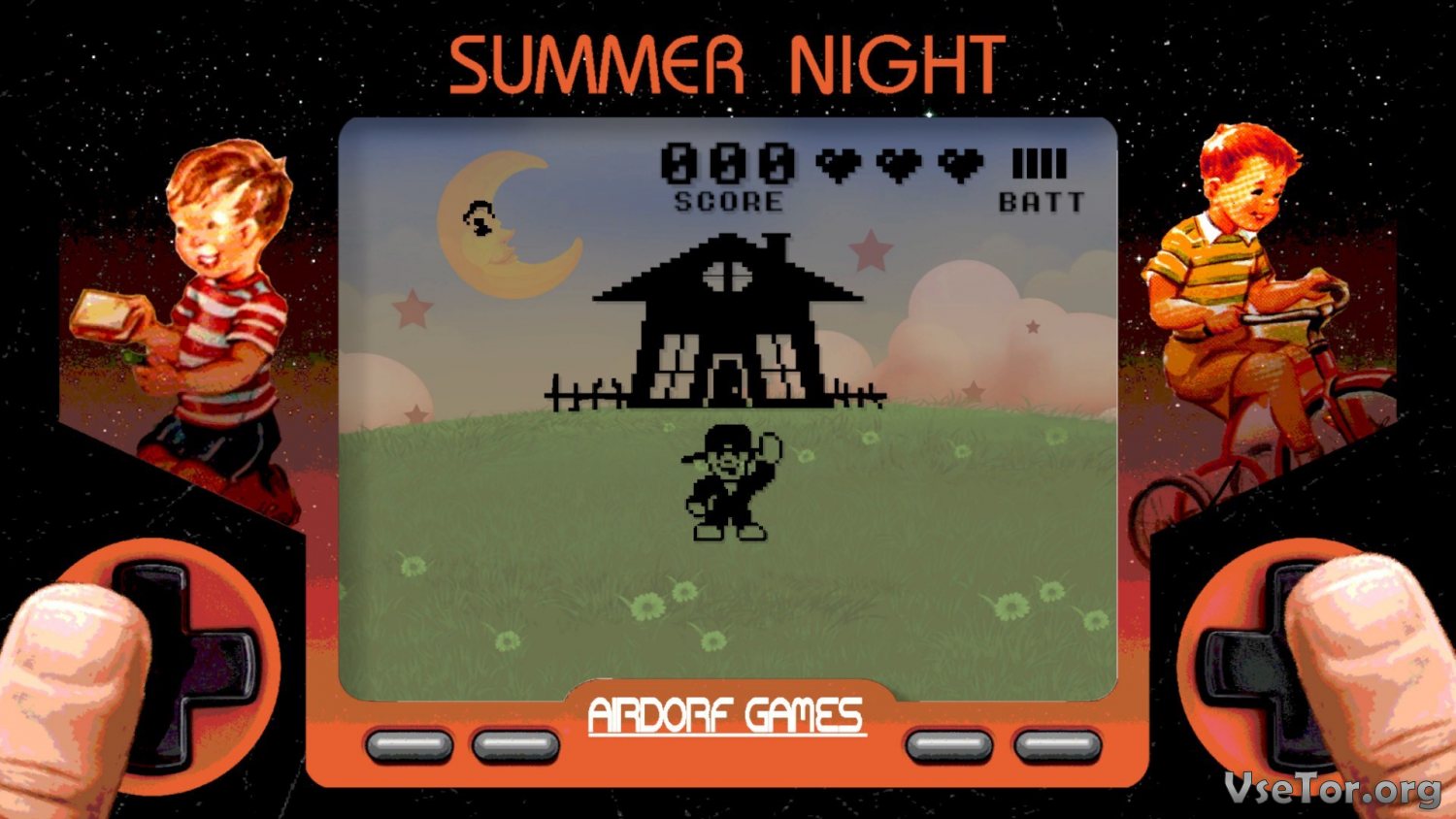 Первой игрой в коллекции является игрушка под названием Airdorf - SUMMER NIGHT, что некогда была одной из популярнейших среди игр на карманных устройствах. Бегайте по своему заднему двору и просто собирайте поганки, попутно разбираясь с обезьянами.