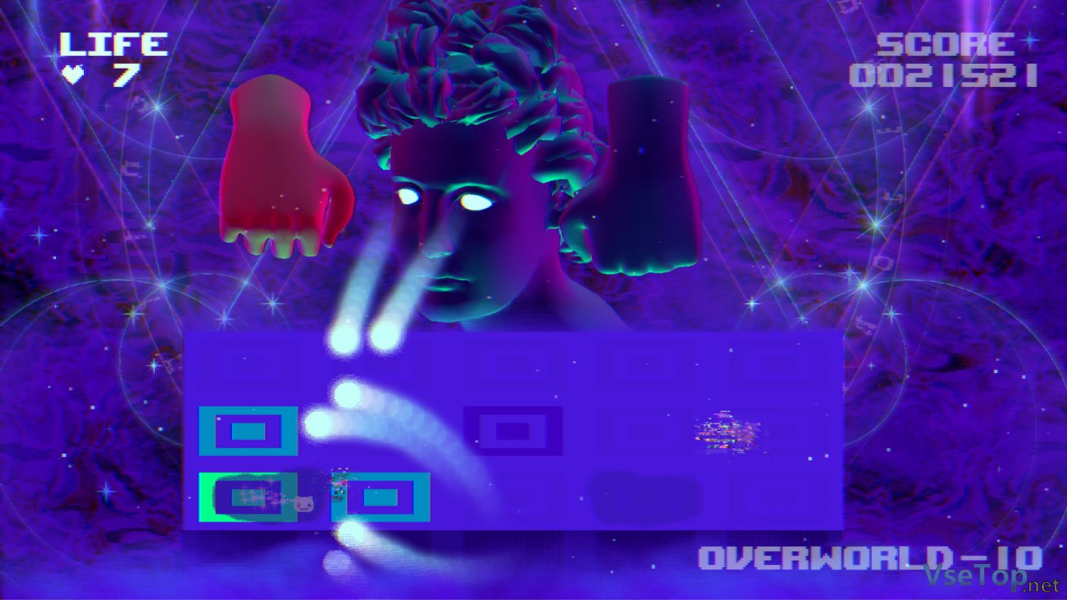 Ну а помимо всего прочего, в каждом здешнем мире присутствует еще и босс. Это может быть большой черный кот со своей армией, или же еще что. Лазеры и сжигающие лучи, шквалы пуль, невероятно малое количество отходных путей, никакого оружия для самообороны и реально сложные физические головоломки точно не дадут вам заскучать. Плюс, наверняка придется по душе еще и крутое пиксельное психоделическое оформление игры… У нас вы можете скачать PUSS! торрент последнюю версию бесплатно на компьютер.