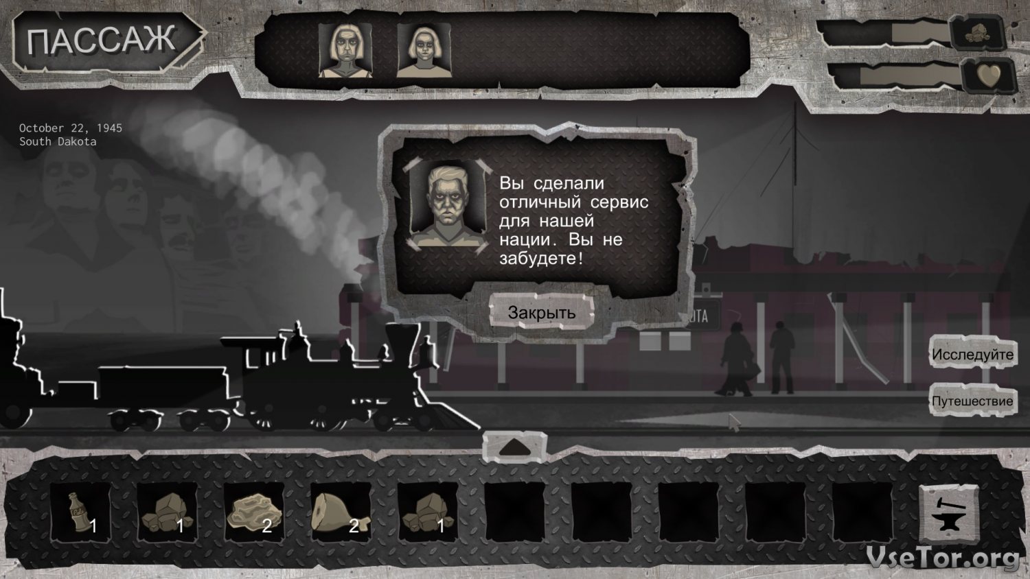 Но не думайте, что будет легко. В The Last Train вам придется принимать много важных решений, ломать судьбы людей, иногда даже обрекать некоторых на неминуемую гибель, и лишь некоторых спасать. Кого вы спасете, а кого оставите умирать? Как обеспечите всех всем необходимым? Что будете делать, когда закончится провизия? Ответы на все эти вопросы вы как раз и будете искать самостоятельно.
