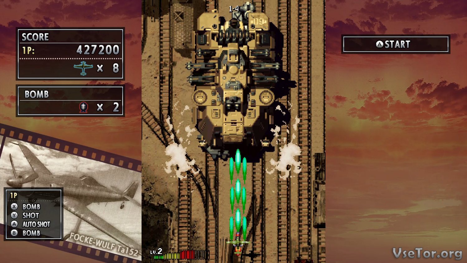 В самом начале игры вы сможете выбрать один из шести самолетов-истребителей периода Второй Мировой войны, и далее на выбранном самолете как раз-таки и будете проходить многочисленные уровни. В вашем распоряжении будет широкий ассортимент вооружений, бомбы, пулеметы, и не только, и вы должны будете использовать все это в сражениях с самолетами врага и боссами. Естественно, тут имеется и ограниченный запас здоровья, и всего дается три жизни, и имеются другие не менее важные механики, но в целом все здесь выглядит так, как и заведено жанром.
