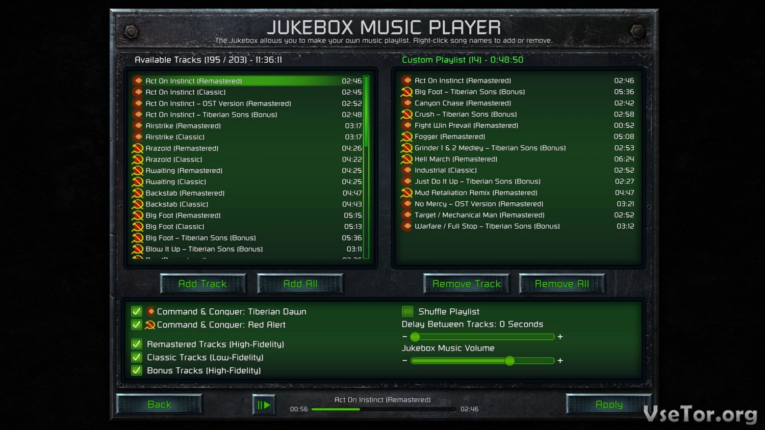 Ну и первым делом стоило бы сказать о том, что данный сборник включает все официальные части серии, а также, дополнения, что выходили официально на протяжении всех лет. Их не так уж и много, но даже того, что имеется, вам будет достаточно для того, чтоб хорошо поностальгировать и получить максимум удовольствия от игры. Сражайтесь на просторах огромных переработанных карт, проходите сюжетные кампании, что некогда взрывали игровой мир, погрузитесь в более современные истории противостояния, основывающиеся на тиберии, и не только.