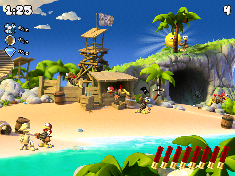 Ну а в остальном Moorhuhn Pirates (Морхухн. Пираты), это простая аркада-стрелялка с видом от первого лица. Стреляйте по пернатым пиратам, сражайтесь, отстреливайте их из разных вооружений и просто получайте удовольствие от игры. И кстати, за образцовое прохождение вы получите доступ еще и к бонусному уровню. У нас вы можете скачать Moorhuhn Pirates (Морхухн. Пираты) торрент последнюю версию бесплатно на компьютер.