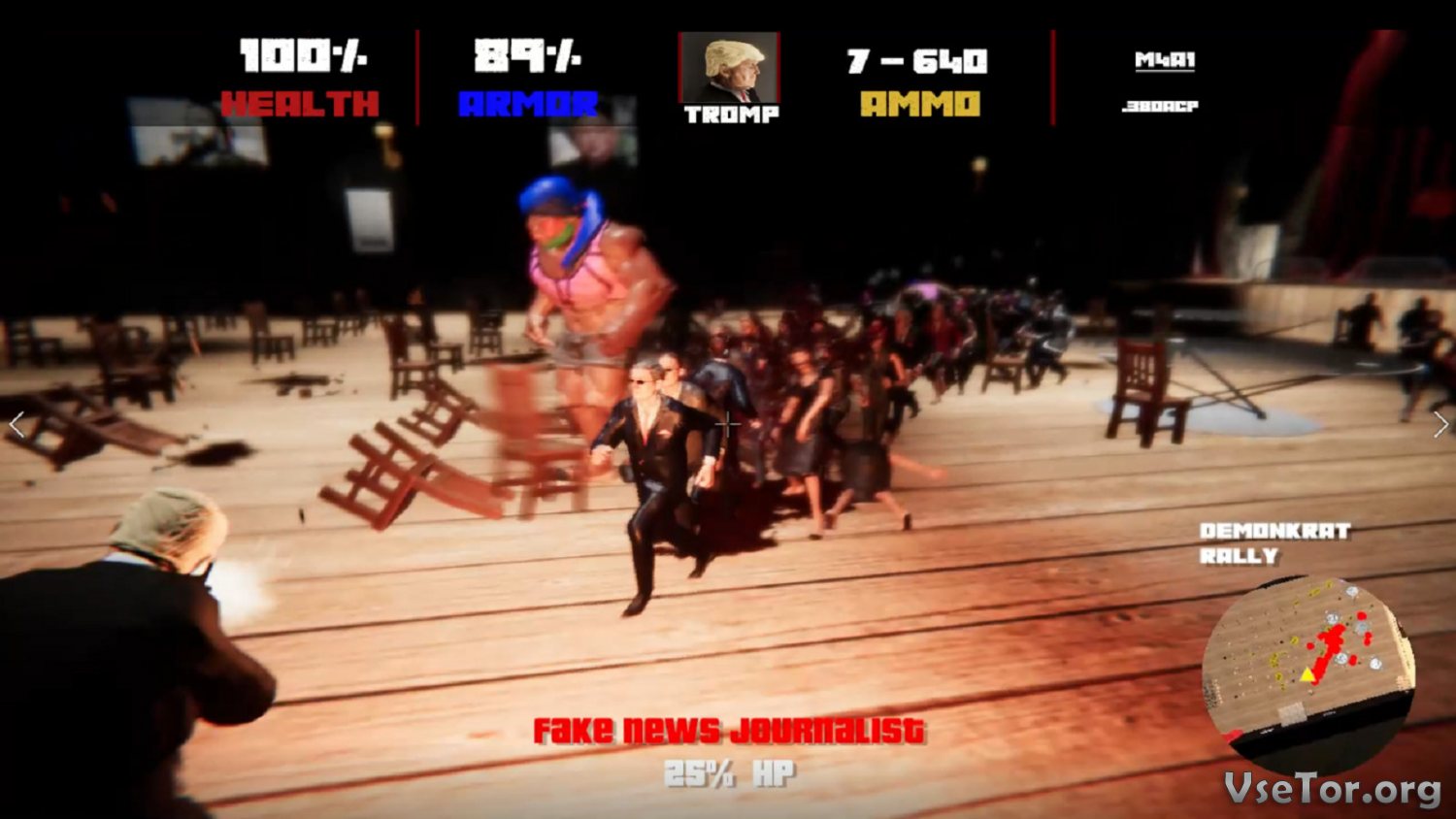 Самое интересное заключается в том, что играть в этой игре предлагается за персонажей, являющихся пародиями на известные личности. Тут вам и мистер Тромп, и Муссолино, и Наполион, и Дольф, и не только. Правда, выбор персонажа никак не влияет на геймплей, так что, особо надеяться на какую-то зависимость умений или способностей от выбора персонажа все же не стоит.