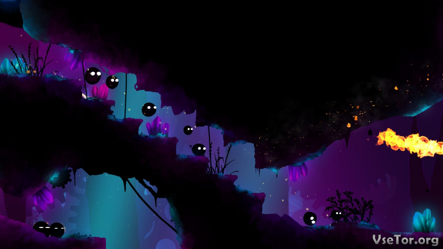 В целом игра чем-то напоминает стандартный платформер, но на самом деле тут все куда сложнее и интереснее, нежели в платформере. Взять даже главного героя – это ведь одновременно и один цельный герой, и множество героев поменьше. С одной стороны, главный герой может быть одним целым инопом, большим, круглым, черным, а с другой стороны, он по вашему желанию всегда может разделить на множество таких же инопов, но маленьких. Для чего это нужно? Дело в том, что именно с помощью этого умения тут и решается большая часть головоломок.
