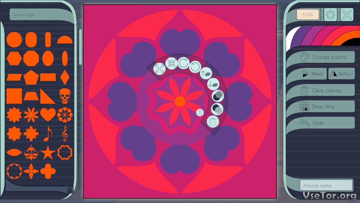 Суть игры довольно проста, и заключается в создании различных изображений с помощью заранее заготовленных фигур, рисунков, форм, и всего остального. В вашем распоряжении будут различные мандалы, калейдоскопы, фигуры, краски, формы и рисунки, которые вы должны будете совмещать друг с другом, и из которых вы сможете создавать самые настоящие произведения искусства. Но не думайте, что будет легко – на самом деле это нелегкий труд, и он потребует от вас и фантазии, и воображений, и стараний.