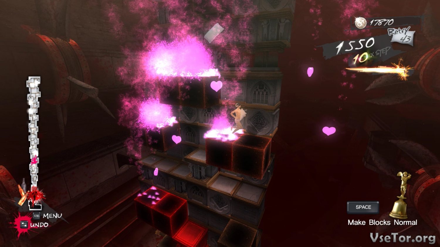 Вторая часть Catherine Classic, это игра-головоломка, события которой разворачиваются на просторах сна Винсента. Тут он, будучи в одних трусах и с бараньими рогами, должен взбираться по кубам на самый верх башни. Казалось бы, ничего сложно, но нет! Во-первых, кубы нужно постоянно двигать таким образом, чтоб образовывалась лестница. Во-вторых, некоторые кубы представляют собою ловушки, способные убить Винсента. Ну а в-третьих, иногда вы будете встречать боссов, из-за которых действовать придется еще быстрее.