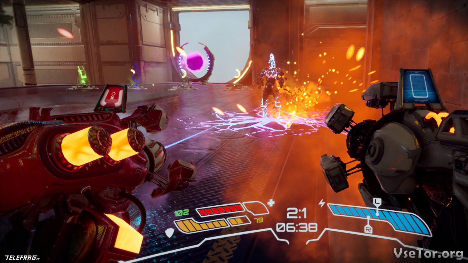 Ну а в остальном Telefrag VR представляет собою типичный аренных шутер с видом от первого лица. Участвуйте в безумных поединках, сражайтесь с многочисленными врагами, используйте вооружения будущего, от которых враги разлетаются на части, телепортируйтесь и прыгайте по аренам, как ужаленный, и просто веселитесь… У нас вы можете скачать Telefrag VR торрент последнюю версию бесплатно на компьютер.