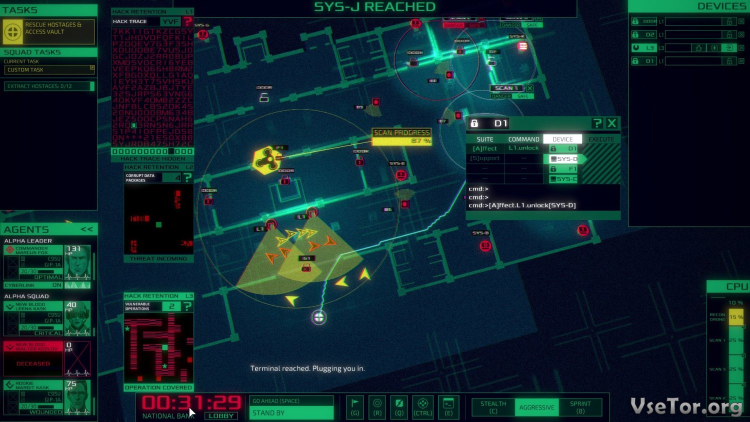 Итак, теперь вы хакер и причислены к отряду секретных агентов-разведчиков. Вам предстоит участвовать в опаснейших миссиях, и решать задачи, которые сами агенты решить не могу. Например, вам будет необходимо решать задачи, связанные со взломом охранных систем. сканировать местность, следить за противниками, открывать двери, искать наиболее безопасные маршруты для передвижения отряда, и делать многое другое. Но помните, что от вашей поддержки, от ваших действий и решений, будет зависеть очень и очень многое, в том числе и безопасность оперативников.
