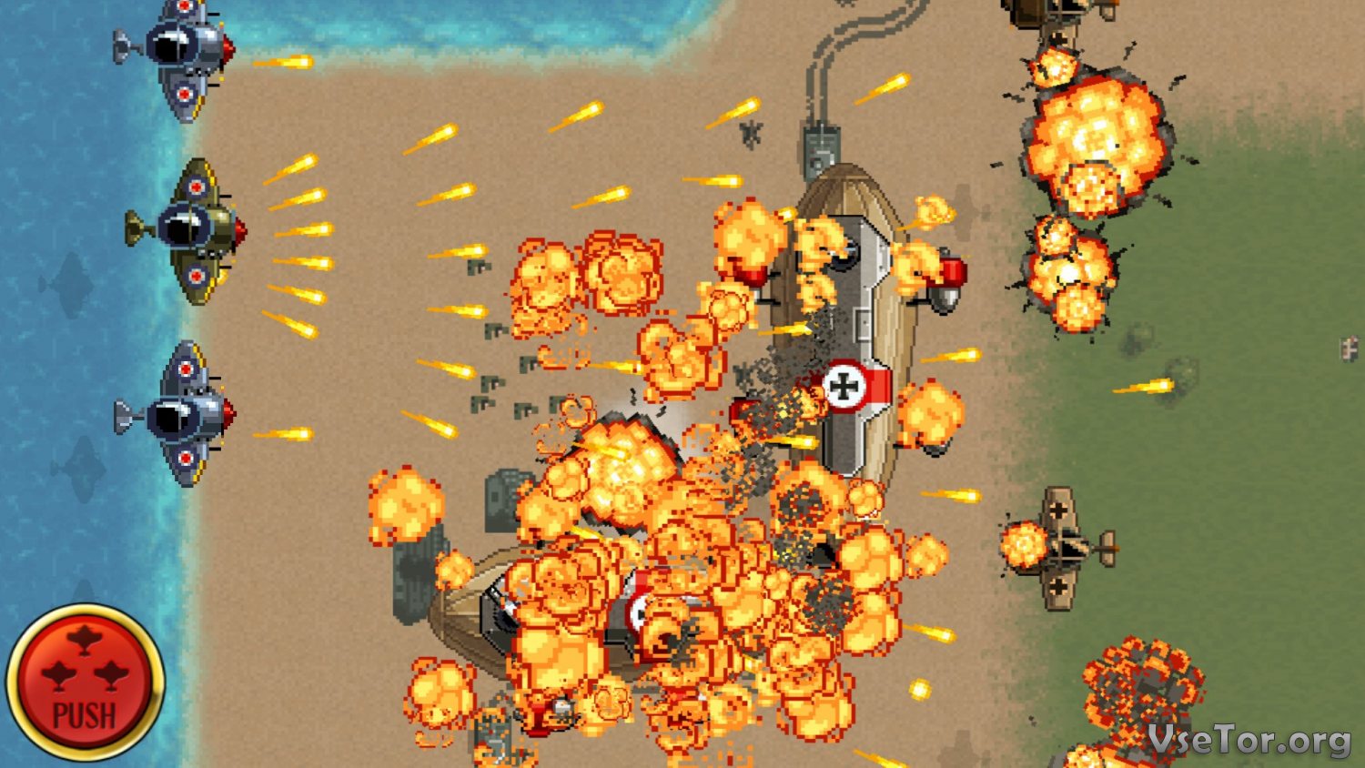 Вас ждет более пяти десятков уникальных уровней, на которых вы во главе лучшей эскадрильи будете сражаться с многочисленными пилотами Германии, уничтожать боссов на огромных бомбардировщиках и даже летающих тарелках, и не только. А делая все как можно быстрее и красивее, вы будете зарабатывать еще и различные достижения, бонусы. дополнительные пушки.