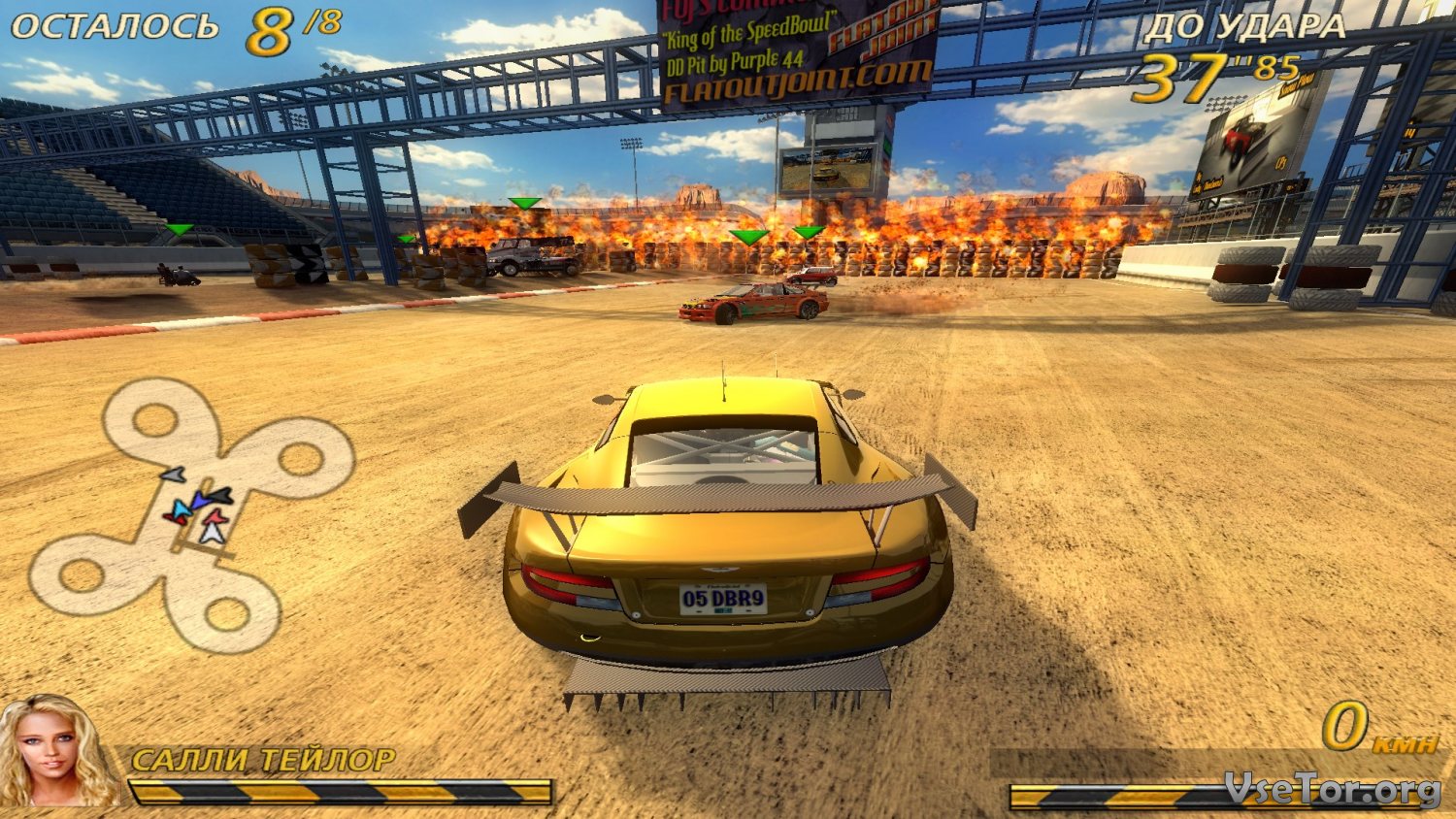 Ну а в остальном FlatOut 2 Most Wanted представляет собою все ту же безумную игру с авариями, разрушениями, безумными гонками на трассах и по бездорожью, прыжки с трамплинов, и не только. Гоняйте, творите безумные трюки, выживайте и побеждайте. У нас вы можете скачать FlatOut 2 Most Wanted торрент последнюю версию бесплатно на компьютер.