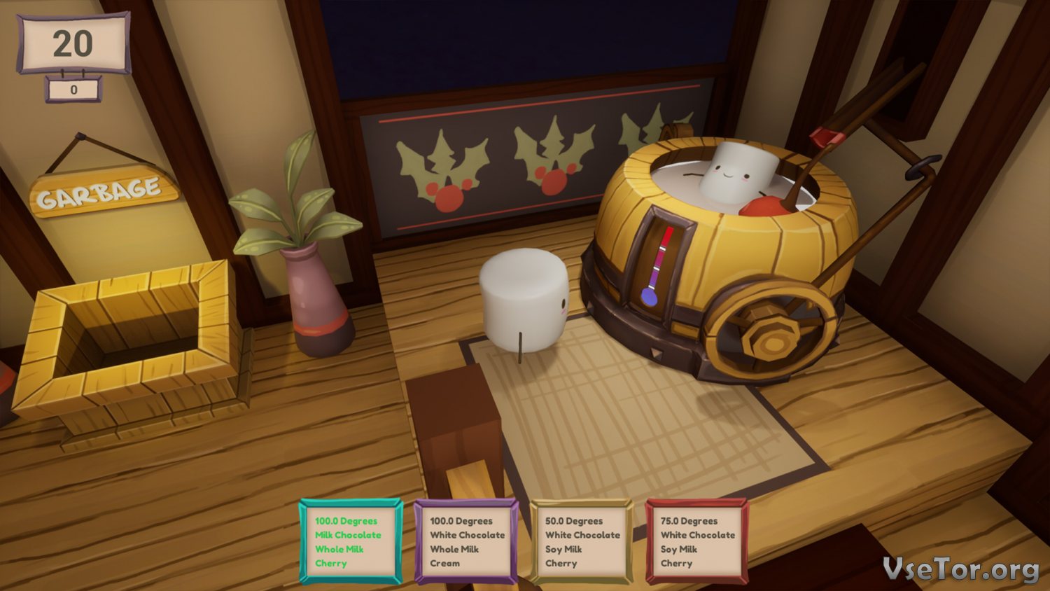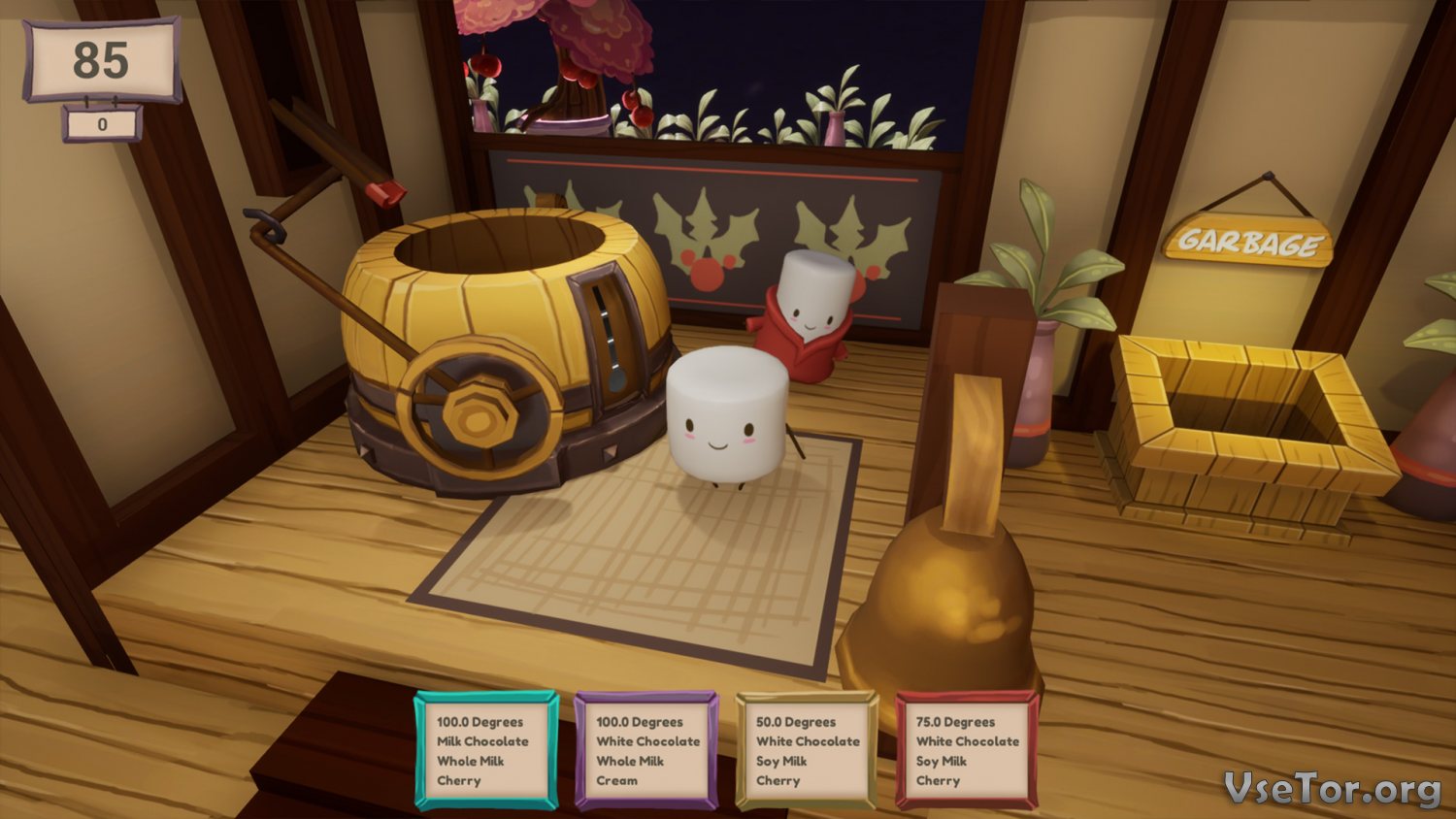 Вам же нужно подготавливать ванны к использованию. Ознакомившись с условиями. Вы должны будете начать приготовление: набрать нужное количество воды, принести шоколад, находящийся на складе на другом этаже, всыпать нужное количество специй, если потребуется, и подать сигнал заказчику о том, что ванна уже готова. Казалось бы, ничего сложного, но на самом деле сложностей более, чем предостаточно. Во-первых, каждый зефир по-своему уникален, придирчив и щепетилен. Во-вторых, у всех свои предпочтения. Ну а в-третьих, порою нужно добавлять такие ингредиенты, доступ к которым получить не так уж и просто.