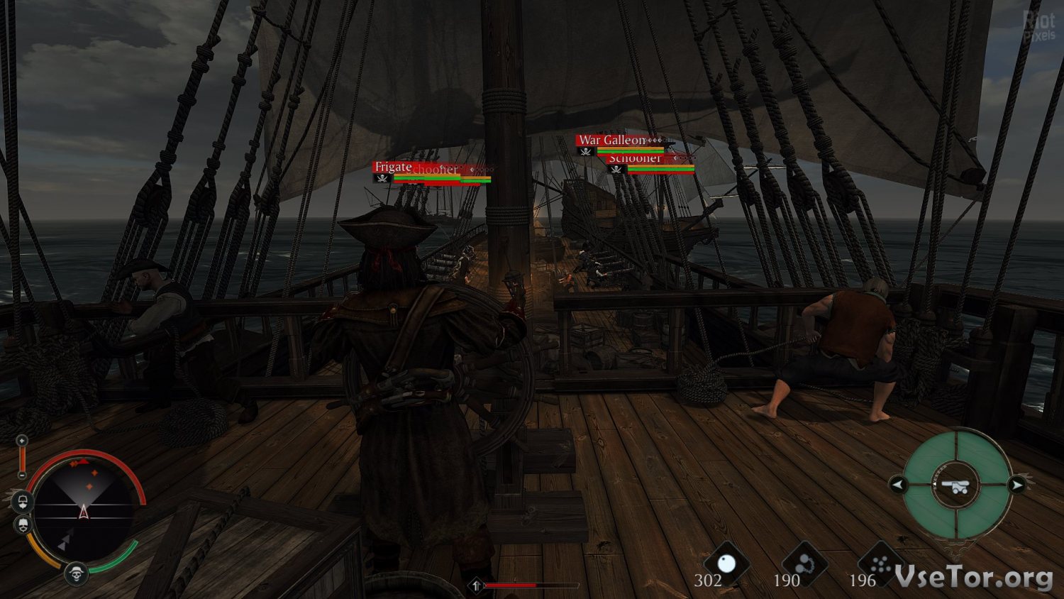 Мир в этой игре жив и ярок. Все персонажи, которые встретятся на вашем пути, живут своей жизнью. Одни будут давать вам подсказки в отношении сюжетной основной линии, другие дадут вам возможность заработать денег на развитие, а третьи и вовсе будут нуждаться в вашей помощи. Вы сами вправе решать, какие задания выполнять, а какие нет, кого убить, а кого пощадить, и какой судно взять на абордаж, но помните, от ваших действий и решений в этом мире зависит буквально все без исключения. Следите за кармой, станьте не просто бандитов, а отважным пиратом, преследующим не только отмщение и наживу, но еще и справедливость. У нас вы можете скачать Vendetta Curse of Raven's Cry торрент последнюю версию бесплатно на компьютер.
