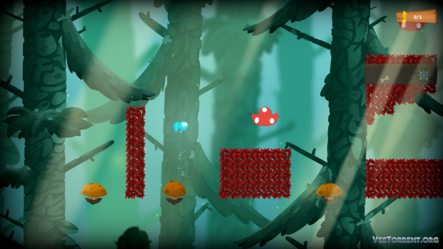 Всего же вас ждет более шести десятков разнообразных уровней, на каждом из которых вас будет ждать уникальная локация с не менее уникальными ловушками, опасностями и врагами. Вы можете бежать вперед, прыгать, замирать в воздухе на короткий промежуток времени и контролировать падение, не более того. Используйте все это с умом, чтоб добраться до конца уровня и перейти в следующий.