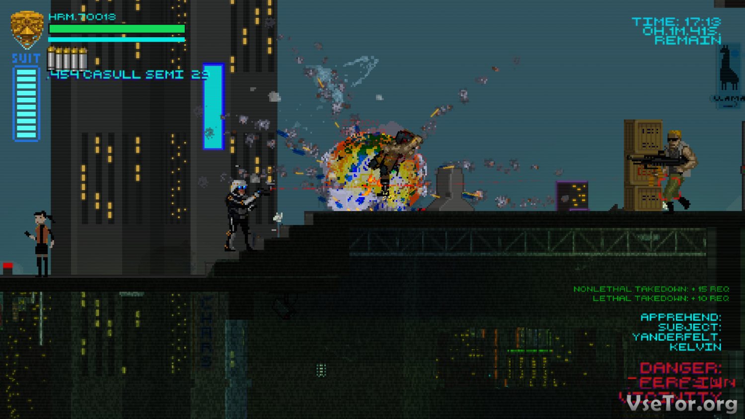 На уровнях вам будут встречаться разные противники, преступники, бандиты и даже роботы, и вам нужно положить всех до одного. Одни могут отстреливаться простыми пушками, в то время как другие и вовсе могут иметь в своем распоряжении пулеметы и многое другое. Но не стоит отчаиваться – в вашем распоряжении тоже будет много оружия, а в ходе прохождения сюжетной линии вы еще и прокачаетесь.