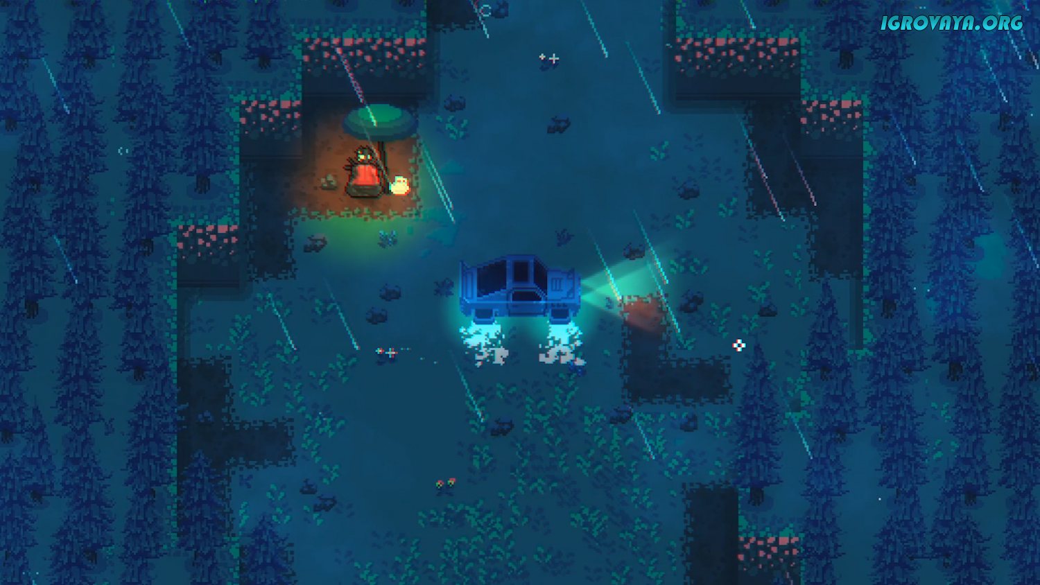 Мир Neon Blight достаточно огромен и поделен на несколько интересных локаций. Например, уже сейчас вы можете из магазина отправиться на своей машине в лес, в котором вас ждет торговец и море врагов. Убив определенное количество врагов и нашедши ящик, вы сможете достать из него новую пушку, характеристики которой генерируются автоматически. Дальше вам нужно лишь определиться с дальнейшими действиями: вернуться в магазин и выложить найденную пушку на прилавок, или продолжить убивать врагов с новой пушкой.