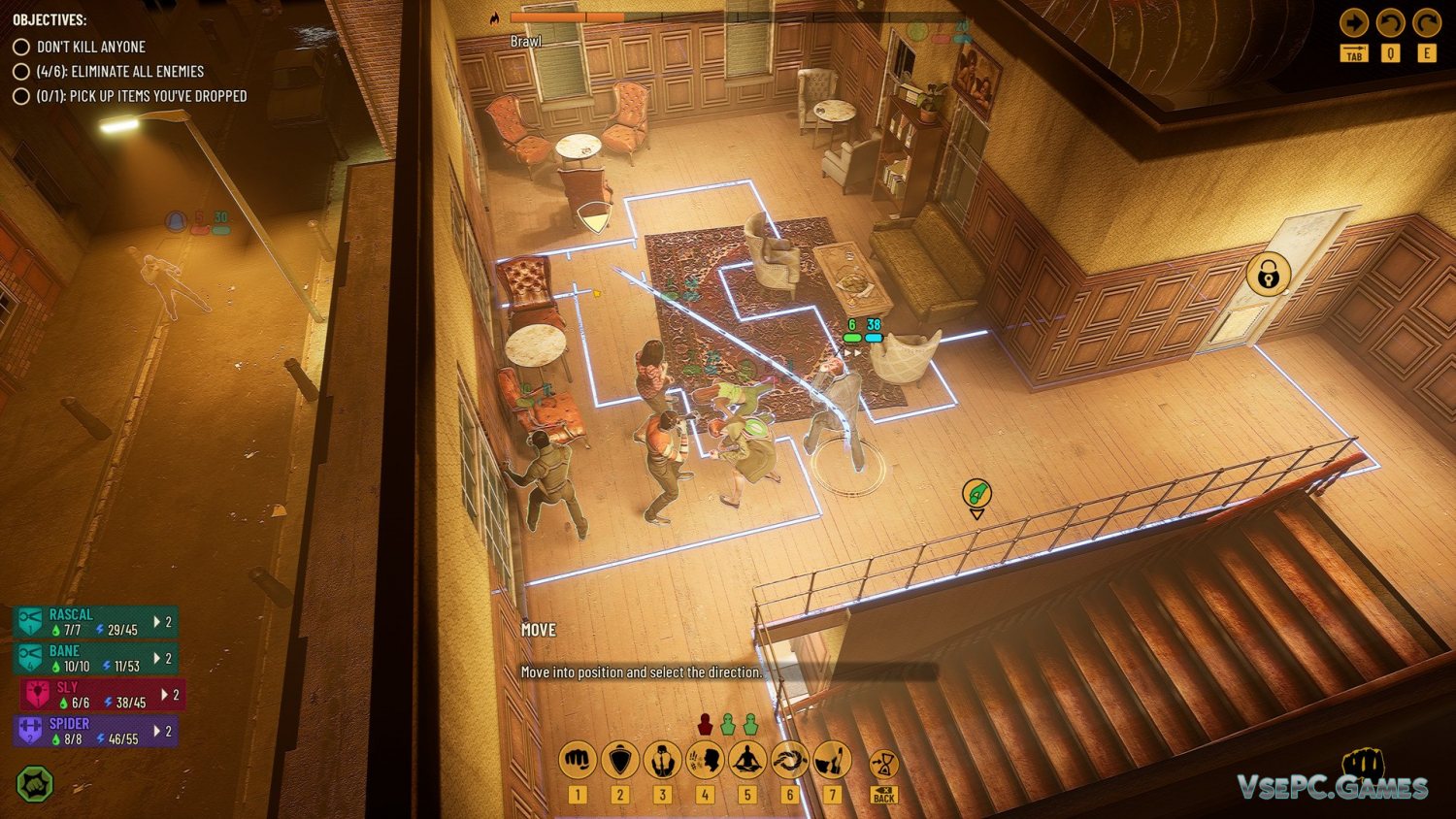 Самое же интересное в этой игре то, что в ней упор делается на рукопашные бои. Здесь практически нет перестрелок или каких-то жутких разборок, и в основе всего лежат типичные драки. Но драки эти будут тактическими. Тут не получится просто бежать вперед, размахивая при этом руками. Придется продумывать каждый ход, думать, как нанести удар противнику, как застать его врасплох, и когда напасть. Причем, вариантов достаточно много. Можно отвлечь и напасть со спины, или же подослать кого-то из громил…