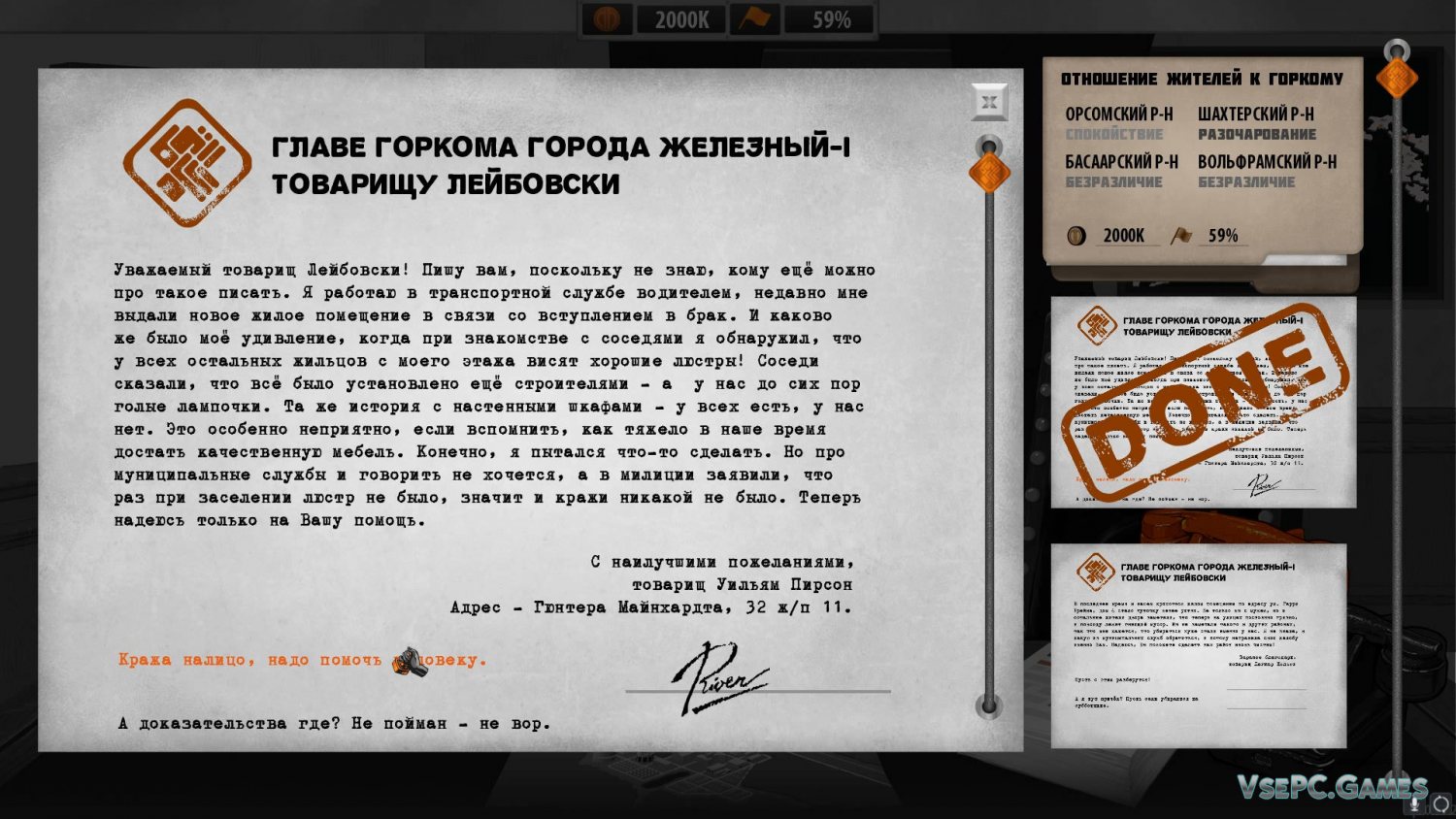 Игра будет то и дело подкидывать вам разные ситуации, в которых вам придется принимать решения, от которых в свою очередь будет зависеть ваша судьба. К примеру, как вы распорядитесь своей властью и что будете делать? Накажите подростков, избивших старика-контрреволюционера? Или поощрите их? Принимайте решение, но помните, в ответ на любое решение выскажут свое мнение как одни, так и другие.