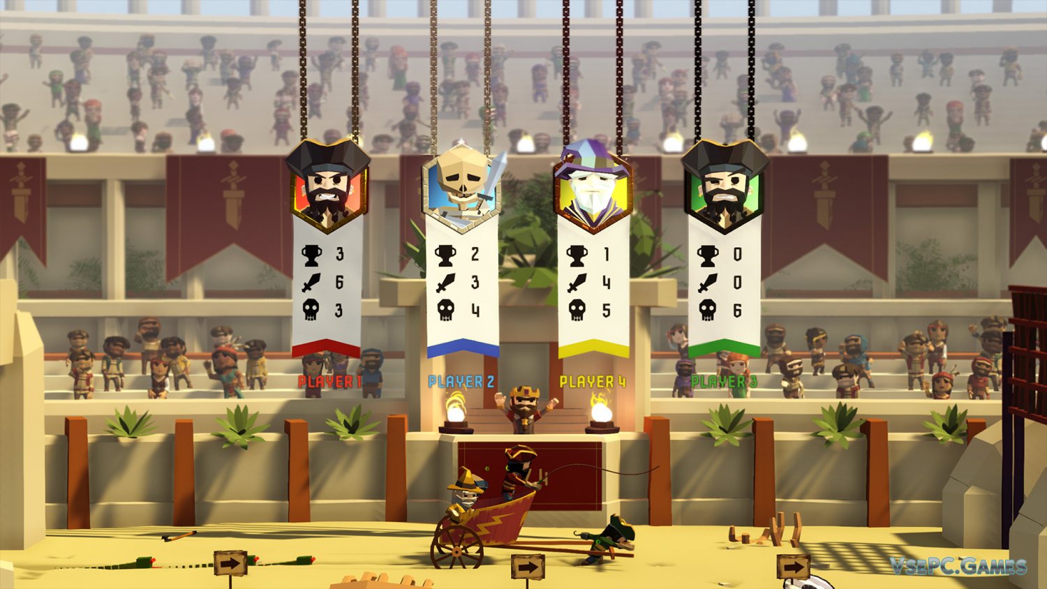 Играть же тут предлагается в режимах на шестерых человек. При этом, можно играть, как в паре, так и «каждый сам за себя». Есть множество разных персонажей, и каждый со своей уникальной внешностью, умениями, и характеристиками. Выбирайте того, что придется вам по душе, и начинайте сражаться.