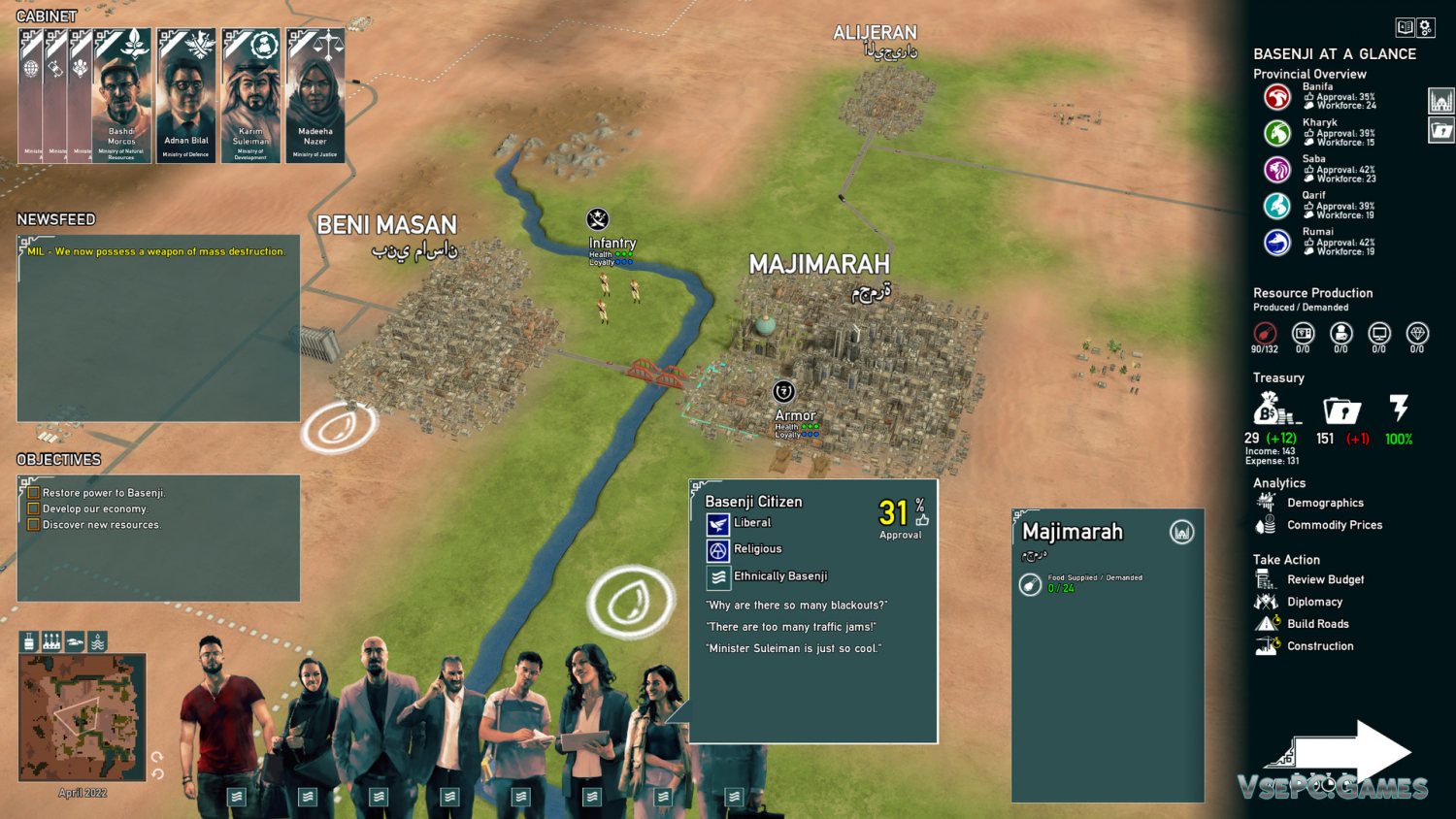 События происходят в Басенджи. Это новообразованная республика, получившая жизнь на Ближнем Востоке в ходе демократизации. Теперь республика должна развиваться, жить, строить свое будущее, и вы станете во главе всего этого. Станьте президентов новообразованной республики, постройте экономику, соберите совет министров, в который войдут лишь доверенные лица, угождайте гражданам республики, и главное, сделайте все возможное для того, чтоб как можно дольше оставаться во главе этого нового государства.