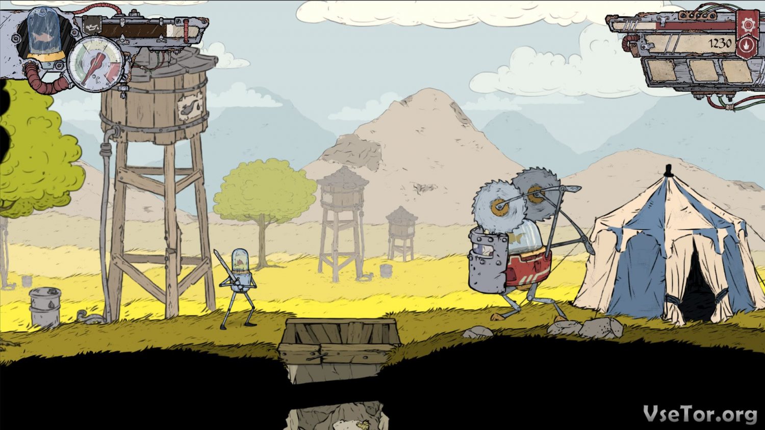 Feudal Alloy – приключенческий двухмерный экшен с примесью RPG, в котором вы должны будете поиграть за необычного робота по имени Атту, управляющегося интеллектом рыбки, расположенной в аквариуме в голове персонажа…