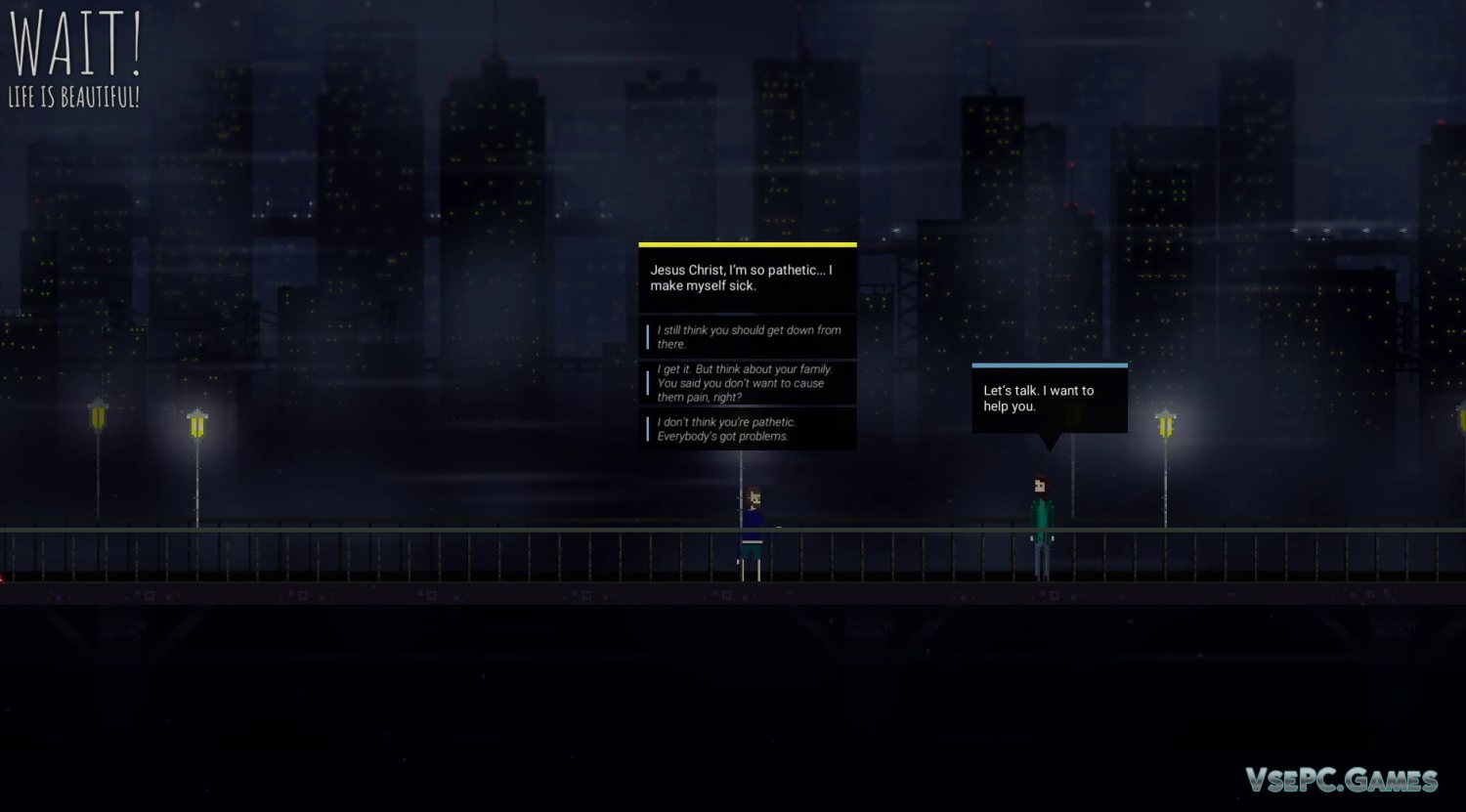 Wait! Life is Beautiful! (W!LiB!) – это очень необычный психологический триллер с примесью квеста, игра, в которой вы должны будете сыграть роль человека, что разговаривать с самоубийцами и пытается отговаривать их от рокового решения…