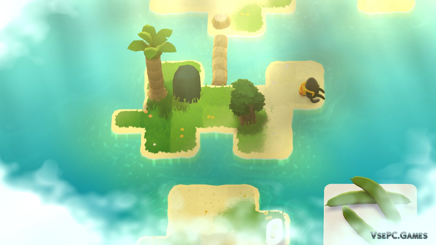 Решать головоломки в Англяндии довольно просто. В начале уровня вы оказываетесь на острове, на котором могут быть деревья и камни. Вы можете валить деревья, но делать это нужно таким образом, чтоб потом срубленное дерево можно было передвинуть, да так, чтоб оно образовало мост. На это дается не так уж и много шагов, и вам нужно продумать, как это сделать так, чтоб шагов хватило. Ничего сложного или необычного, но при этом, игра все время подкидывает сюрпризы, загоняя в тупики и заставляя начинать все сначала.