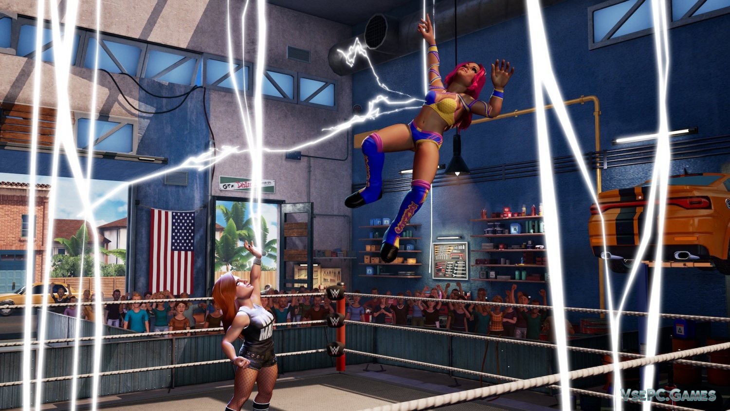 А еще в WWE 2K Battlegrounds вашем распоряжении будет огромное количество разных режимов, в каждом из которых вас будет ждать что-то новое. Докажите, что вы самый лучший боец в мире, участвуя в локальных или сетевых сражениях, станьте Королем Арены, заслужив соответствующий титул, настраивайте арены и сами бои под свои собственные правила, если захочется, и делайте все, что только придет в голову. У нас вы можете скачать WWE 2K Battlegrounds торрент последнюю версию бесплатно на компьютер.