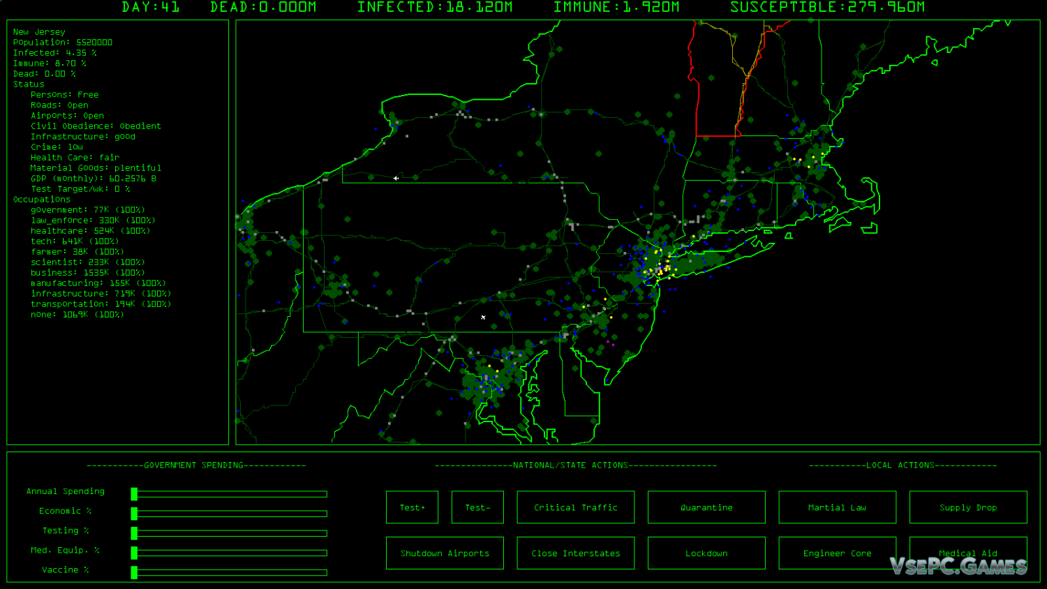 Ну а первым делом стоило бы отметить тот факт, что разработчики очень ответственно подошли к разработке игры и создали действительно реалистичную модель распространения вируса и реакции населения на все происходящее. Тут все происходит очень реалистично, как распространение вируса, так и реакция населения на все происходящее, и так и изменение статистики, и не только.