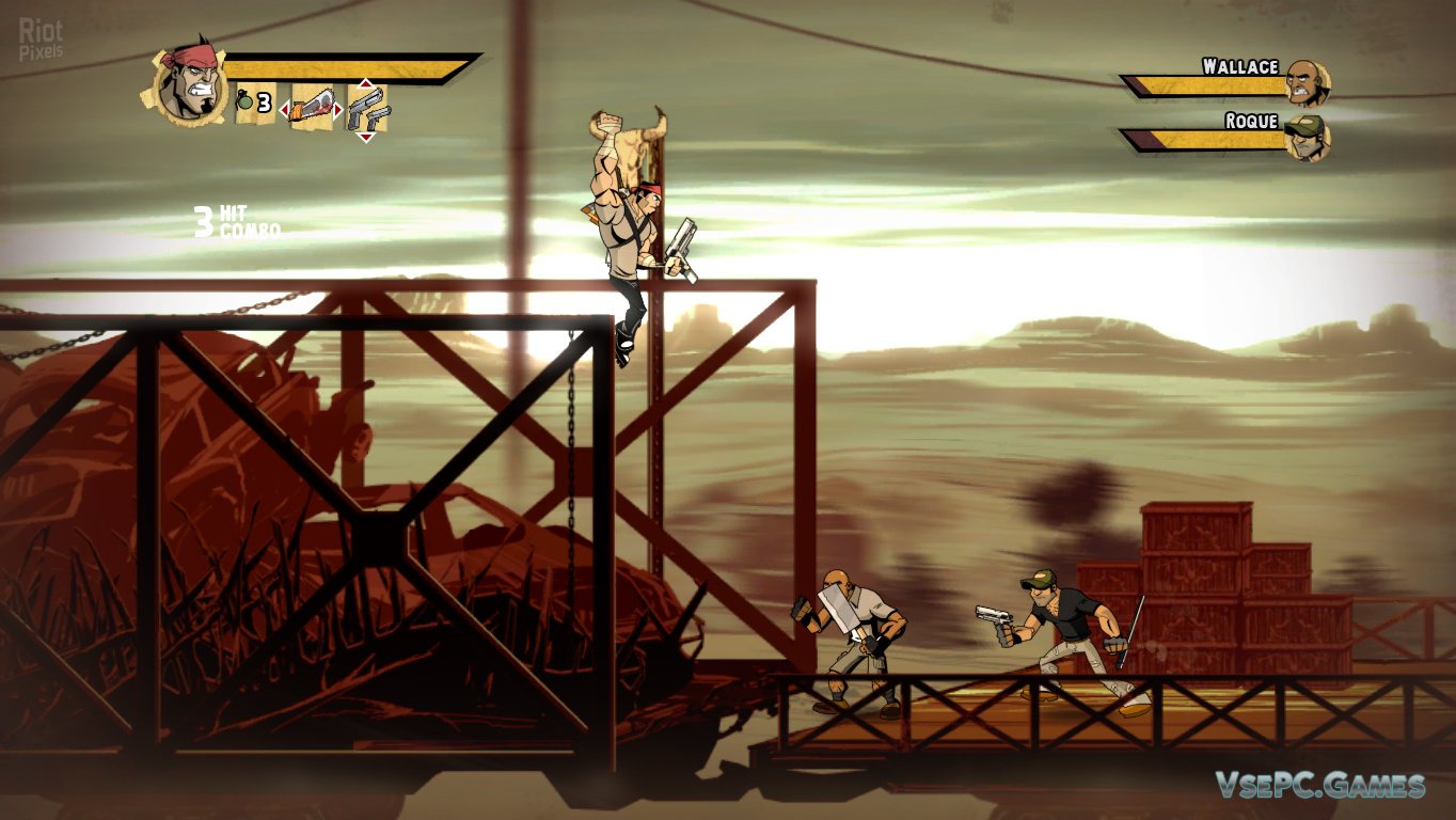 Что касается геймплея, так тут все довольно-таки просто. Это типичный «beat 'em up», выполненный в стиле комикса. Тут вам придется проходить многочисленные двухмерные локации, сражаться с разнообразными врагами, прокачиваться, и делать многое другое. Если в целом, то вас ждет типичный линейный файтинг, в котором все будет сводиться лишь к избиванию врагов. Но при этом, игра может похвастаться безумной атмосферой и широким разнообразием контента. Взять даже оружие. Оно представлено неимоверно обширным арсеналом, включающим ножи, катаны, цепи, бензопилы, огнестрельное вооружение, и не только.