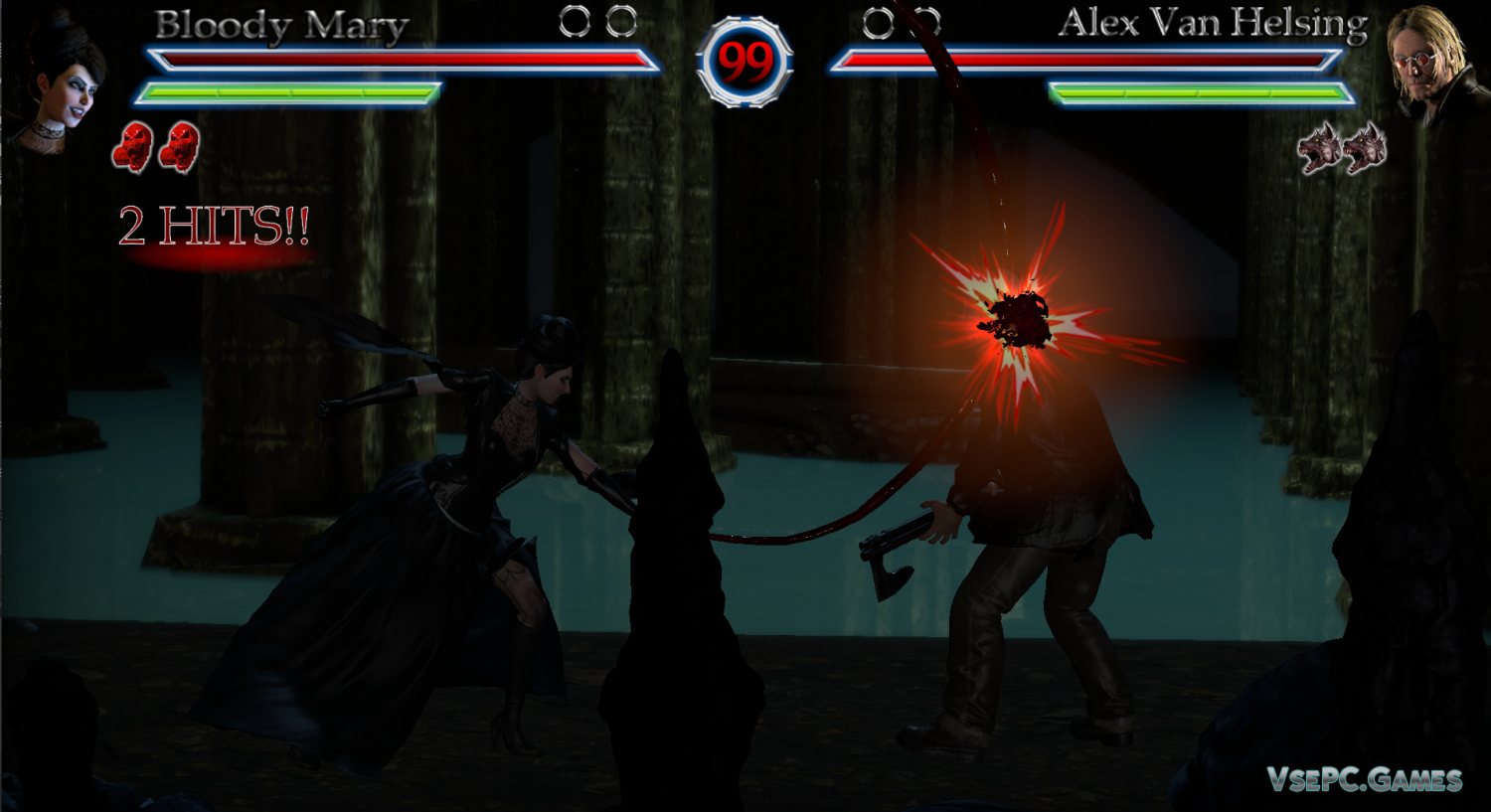События игры вращаются вокруг главного героя, которым стал Алекс Ван Хельсинг. Он жаждет уничтожить Дракулу, и для этого ему придется сначала одолеть кучу других не менее опасных и жестоких врагов. Да-да, в этом файтинге имеется сюжетная линия, а также, вас будет по ходу прохождения ждать много заставок с диалогами, и не только. В общем, будет интересно.