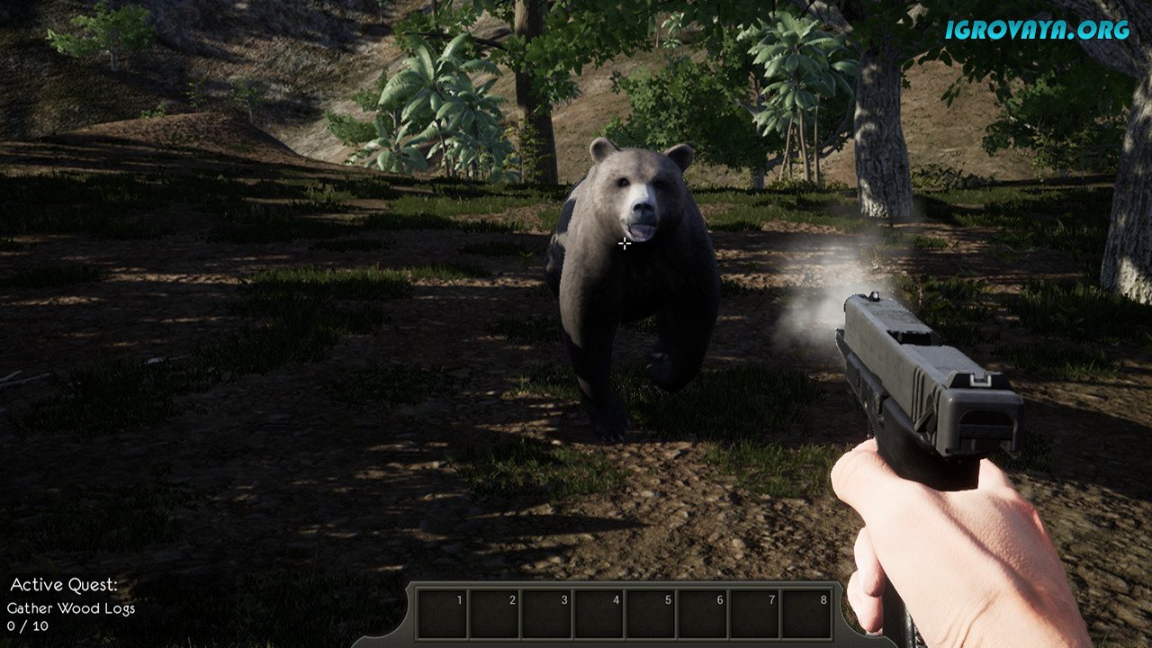 Упор же в игре сделан исключительно на реалистичность. Вы можете взаимодействовать со всем без исключения. Собирайте ресурсы, добывайте камень из скал, создавайте доски из бревен, охотьтесь на здешних животных, разводите костры и готовьте еду, найдите ружье и отправляйтесь на поиски приключений и просто выживайте.
