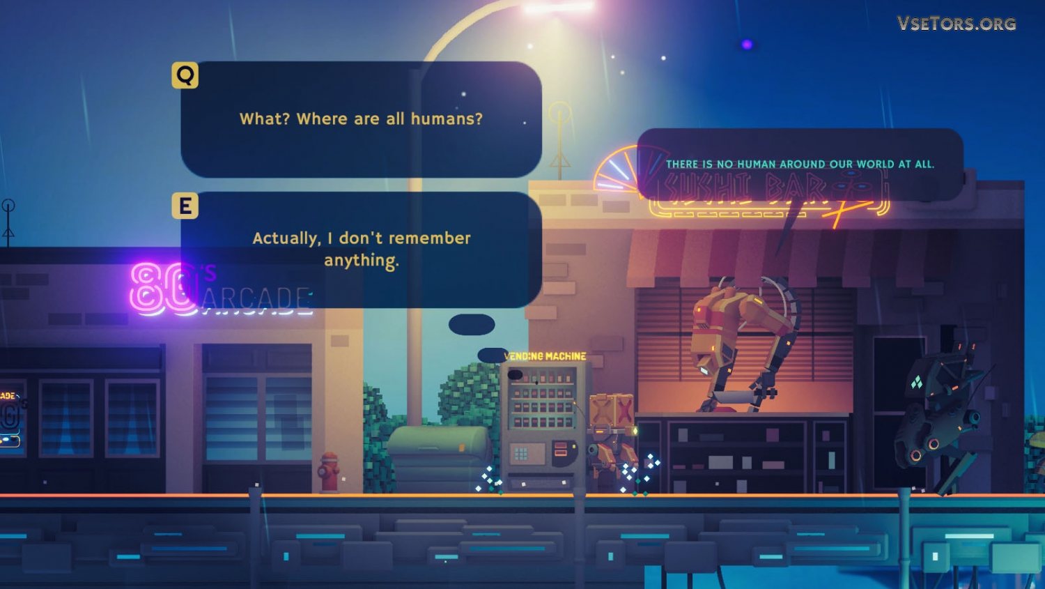 В каждой из областей города вы найдете много разных персонажей. Например, вы повстречаете таких же рабочих роботов, и сможете пообщаться с ними. Один из них может рассказать вам о том, что произошло в городе и куда подевались люди, в то время как другой поможет выяснить, в чем заключается предназначение главного героя. Вариантов много, и каждый собеседник обязательно внесет свою лепту.