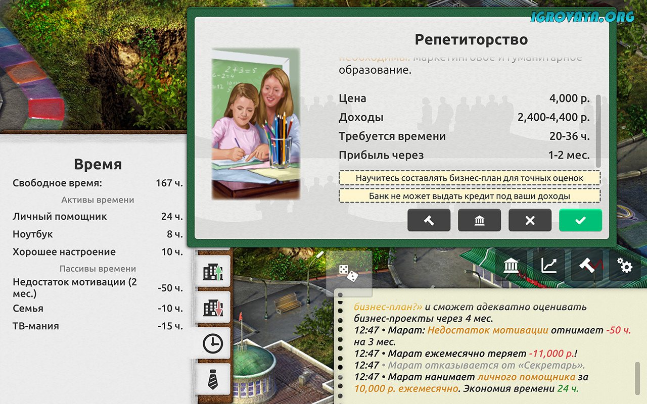 Но не забывайте и о времени. Его будет все время не хватать. А вам ведь нужно успеть оббежать все свои объекты, принять деньги, запросить отчеты, пообщаться с конкурентами и консультантами, и вообще, проделать невероятную работу. Вот и учитесь распоряжаться временем и деньгами эффективно, с пользой. У нас вы можете скачать Timeflow - Time and Money Simulator торрент последнюю версию бесплатно на компьютер.