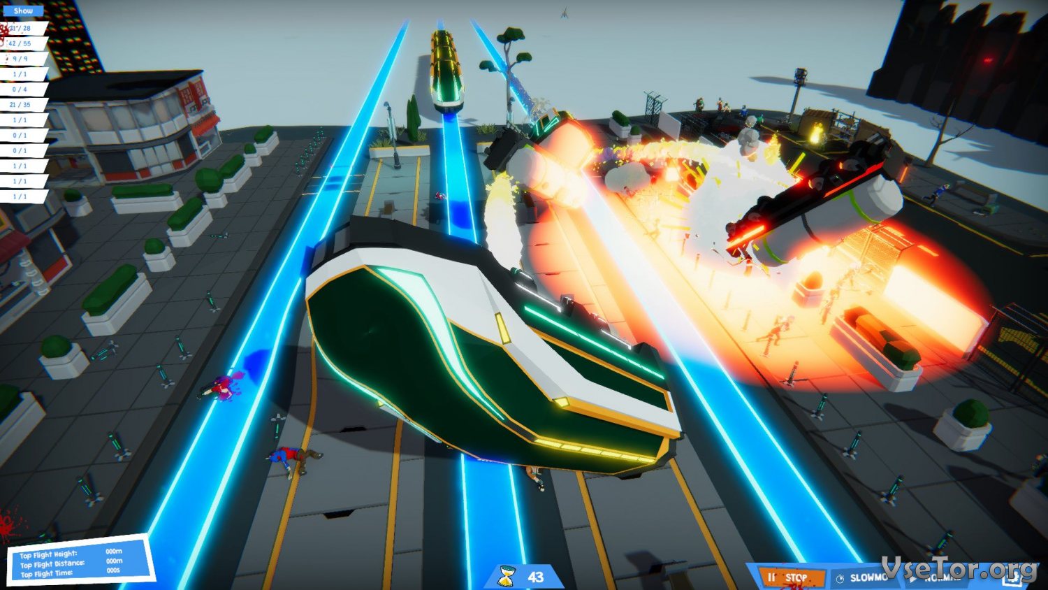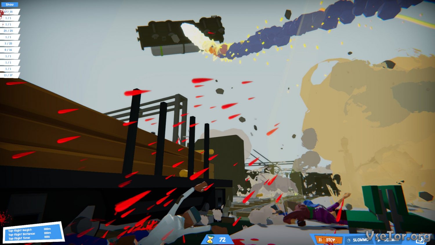 Ваша задача довольно проста – вы попадает на определенный уровень и получаете задание устроить аварию на железной дороге. Все, что вам нужно в Beware of Trains, это просчитать все таким образом, чтоб было как можно больше жертв. К слову, задание будет сопровождаться тремя важными пунктами квестов, которые обязательно нужно выполнить. К примеру, может быть условие, чтоб погибло определенное количество человек, чтоб было разрушено определенное количество зданий, и чтоб все произошло в определенный промежуток времени. Если вы выполните все квесты, вам дадут награду в виде дополнительных очей и орудий убийства.