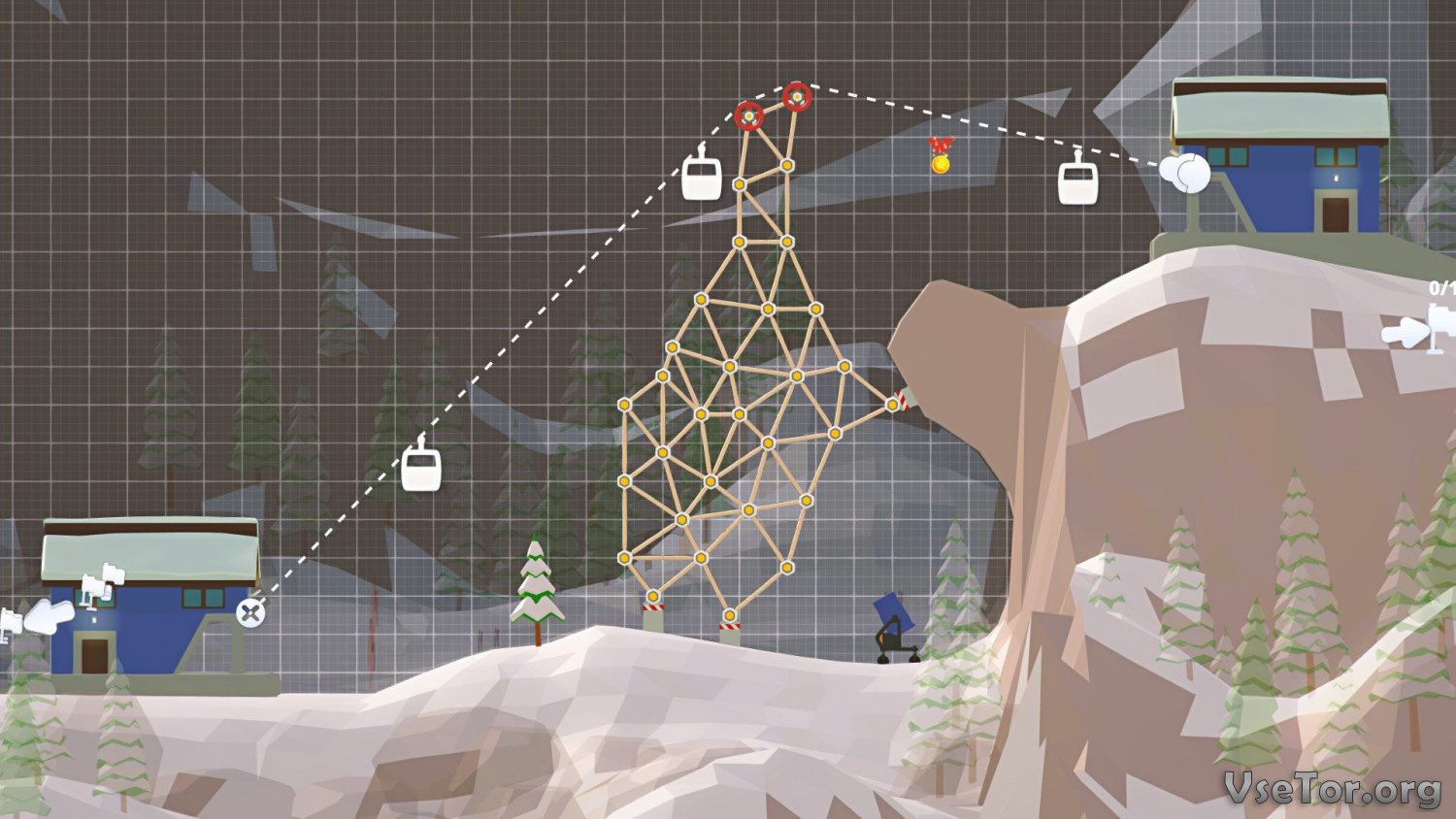 В остальном это типичный симулятор-конструктор, в котором нужно строить мосты для лыжников, спусковые конструкции, трамплины, подъемники и не только. Задача проста – проложить путь из точки «А» в точку «Б», да максимально безопасную. На некоторых уровнях будут разбросаны по маршруту еще и различные медали, которые желательно подобрать во время теста маршрута.